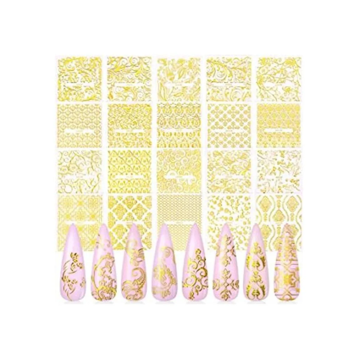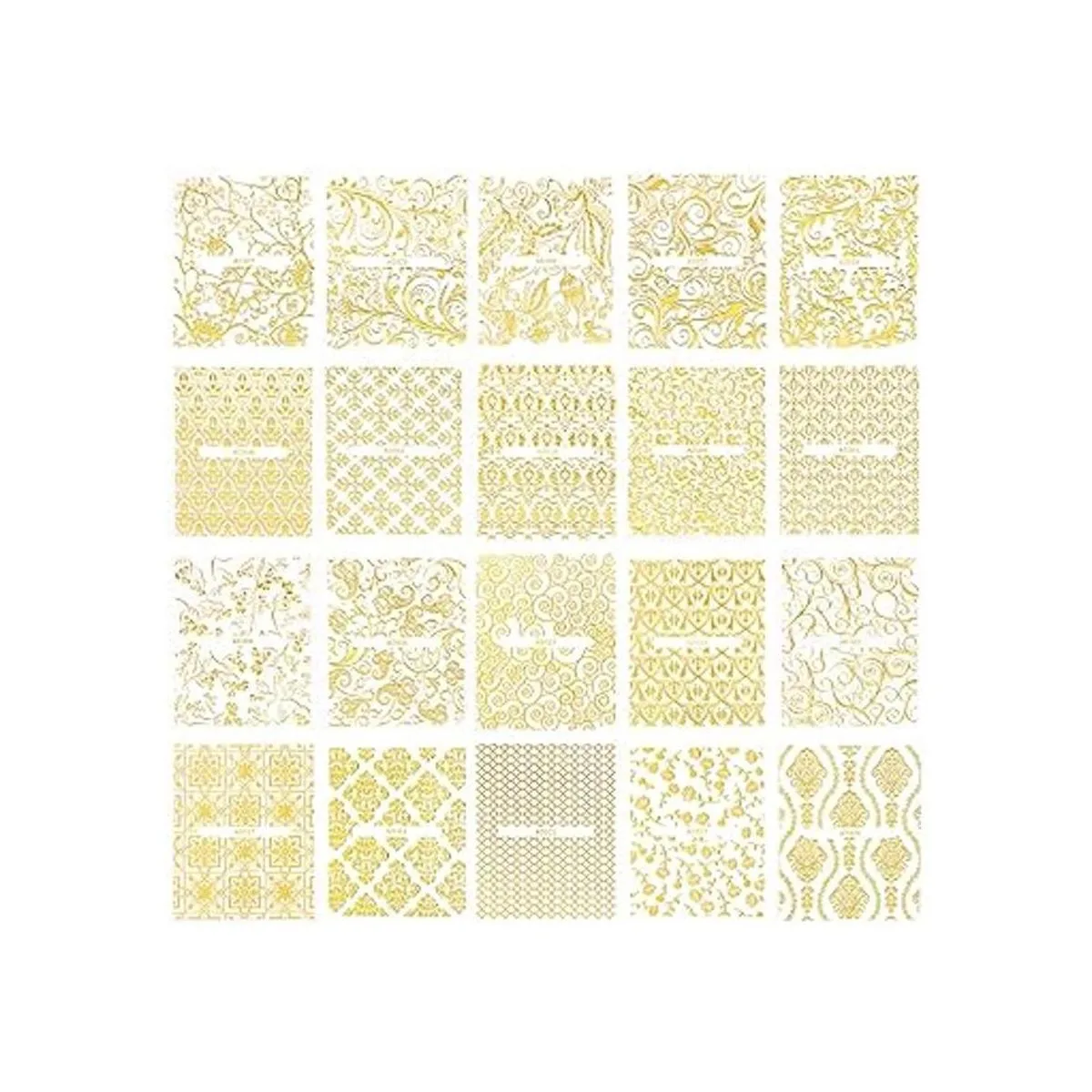 Varios patrones: el paquete incluye 20 hojas diferentes de pegatinas de encaje de flores doradas. Diseños de moda y lindos de pegatinas para uñas de flores de vid.