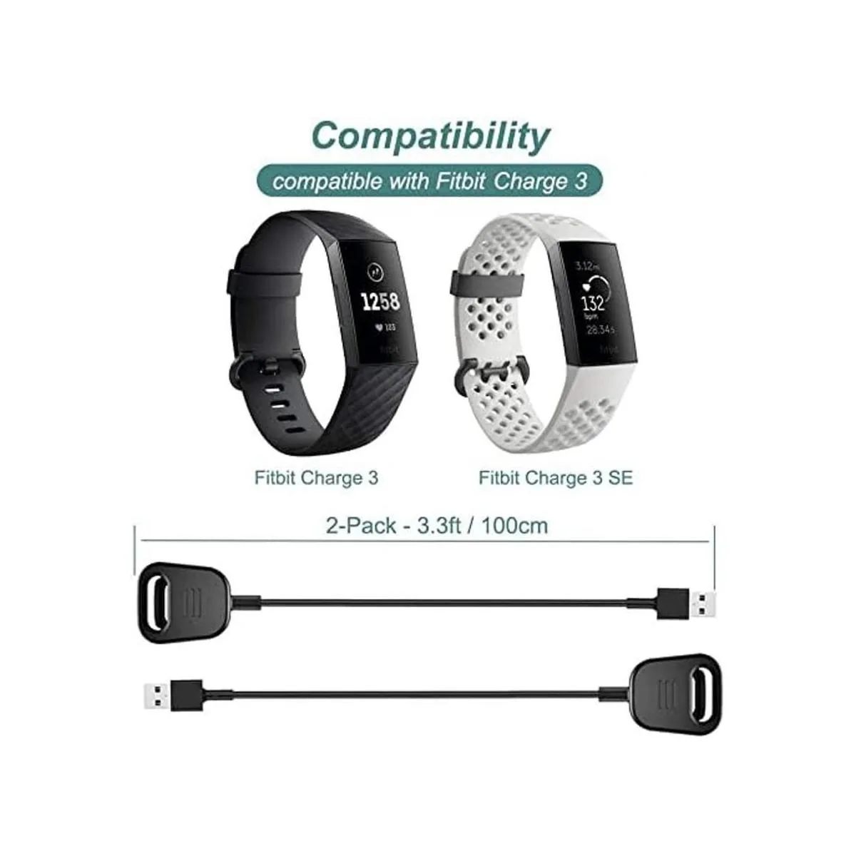 Kissmart Cable de carga compatible con Fitbit Charge 3, adaptador de cable de carga USB de repuesto para Charge 3 2 unidades, 3.3 ft