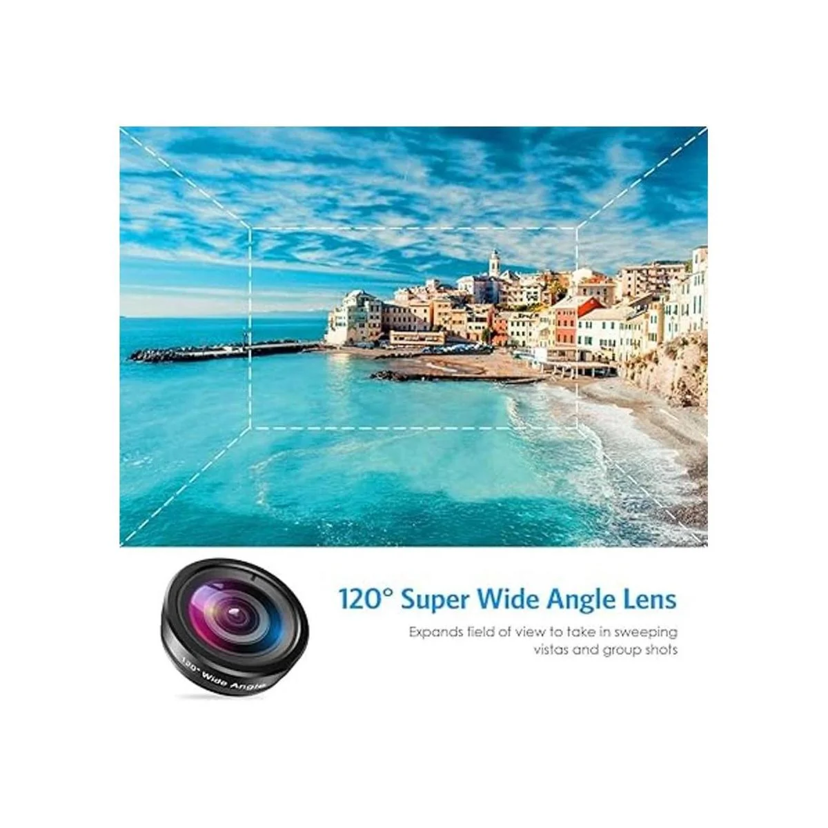 Lente gran angular amplio: la lente gran angular de 0.36x te permite tomar fotos con un mayor alcance. No te preocupes más por perder a cualquier persona o paisaje en tus fotos.