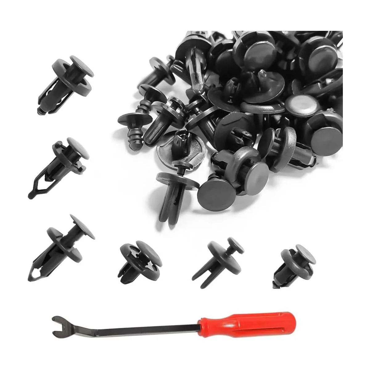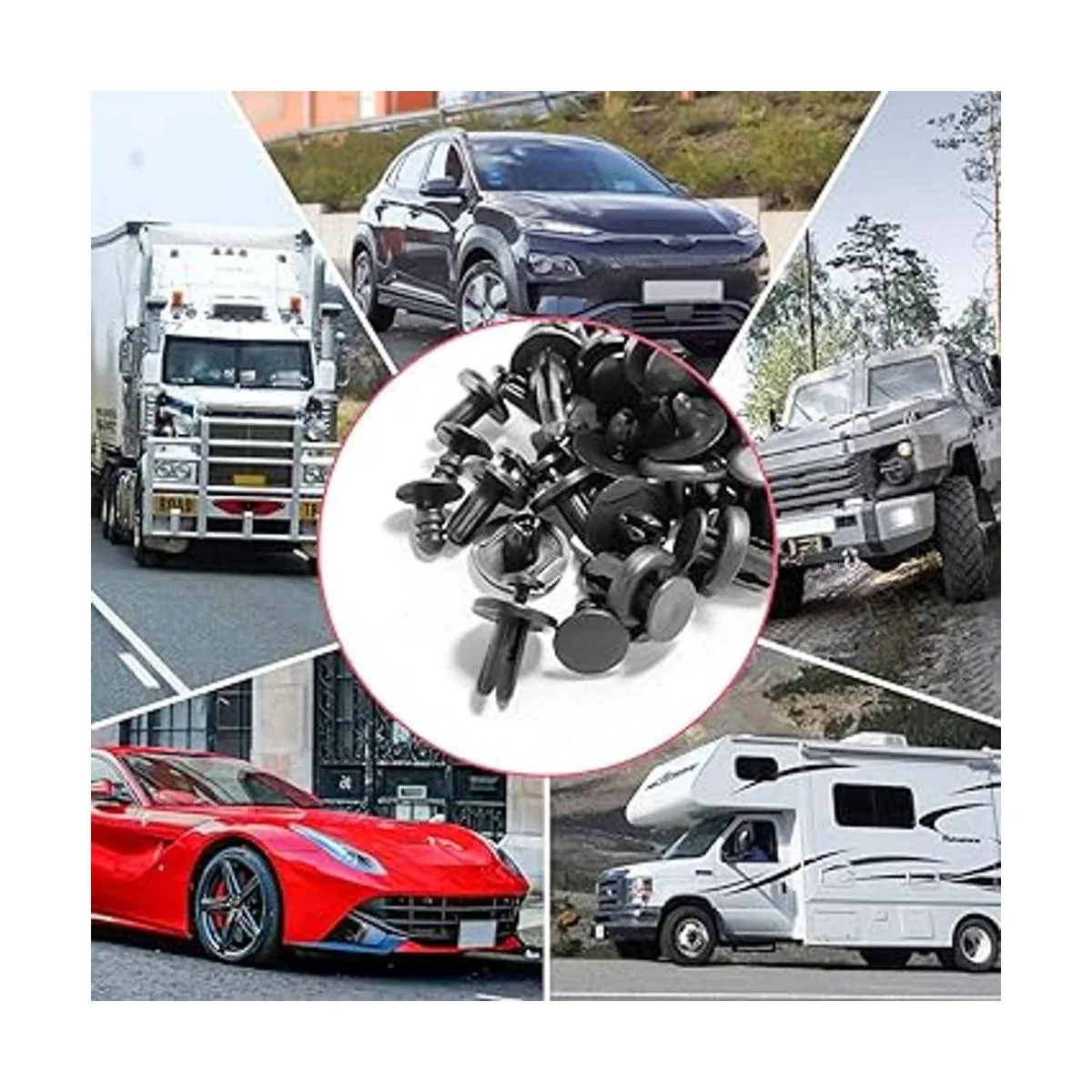 Amplio uso: ideal para molduras de puerta, canesú de escudo de radiador, guardabarros, parachoques, falda lateral, rejilla, cubierta del motor y retenedores de protección contra salpicaduras. Adecuado para la mayoría de marcas de coches, camiones, vehículos, SUV, etc.