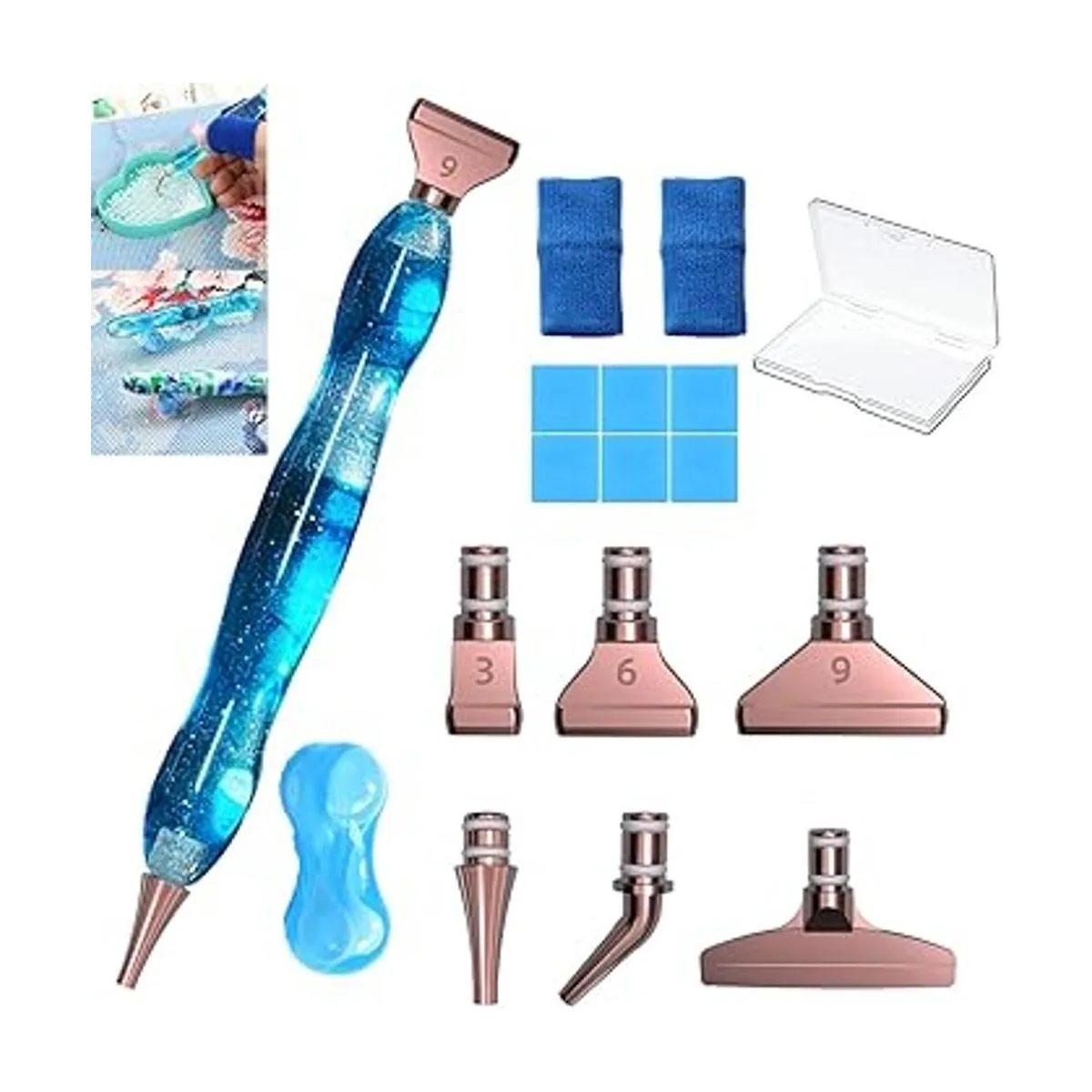 Calidad prémium: nuestras puntas de metal están hechas de acero inoxidable de alta calidad, suave y duradero, no se rompe ni oxida ni se decolora fácilmente, que se puede aplicar durante mucho tiempo, el bolígrafo de pintura de diamantes está hecho de resina 100 hecha a mano, el cuerpo del bolígrafo es un 30 más grueso que los bolígrafos habituales para pinturas de diamantes, por lo que es más fácil y cómodo de agarrar.