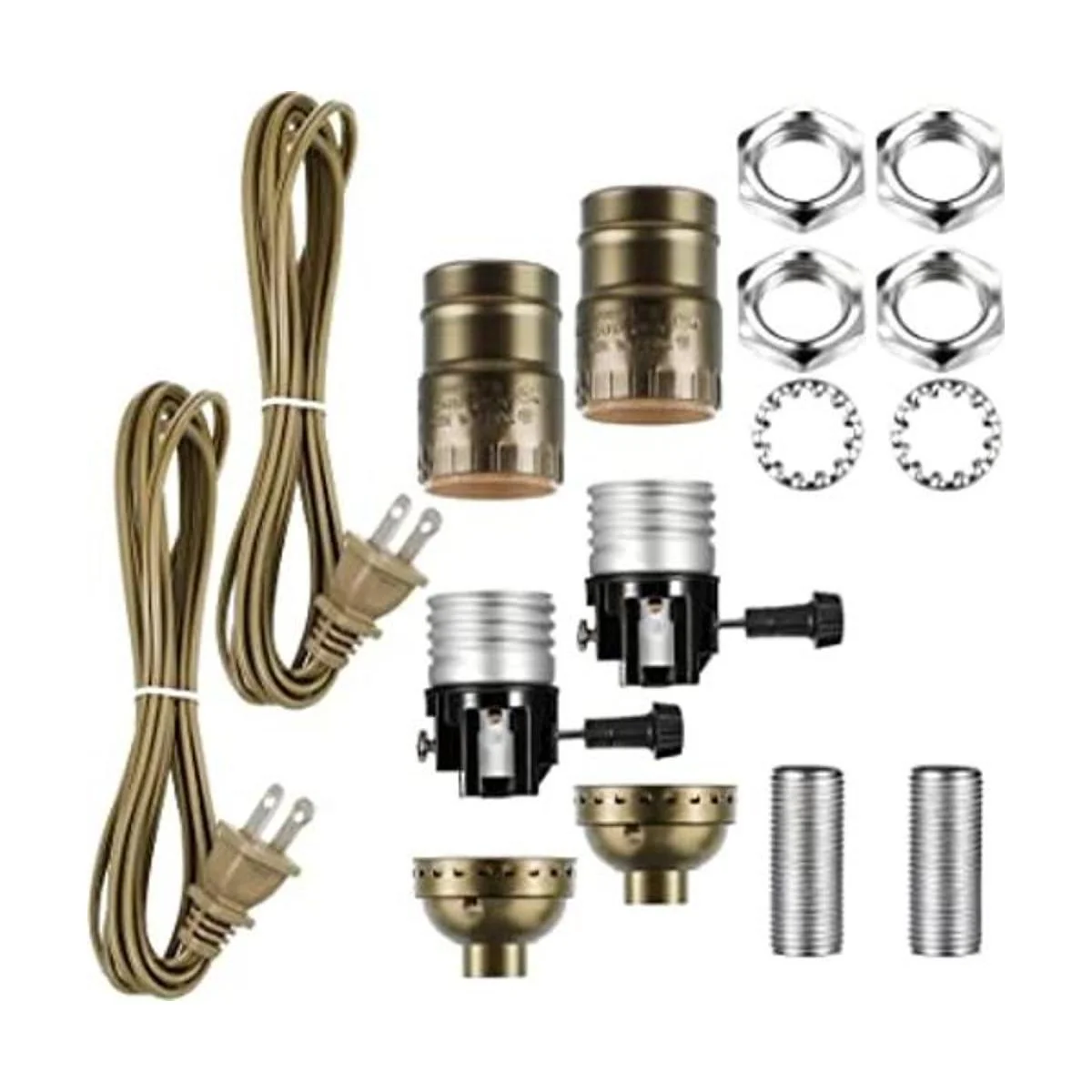 Kit de 2 luces de lámpara, kit de reparación de mesa, kit de lámpara con enchufe de 3 vías, piezas de cableado de lámpara de bricolaje, kit de realambre para diseño de lámpara de bricolaje