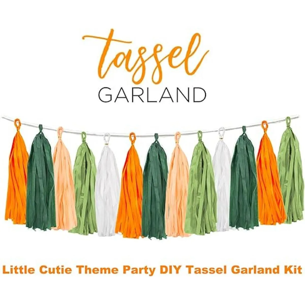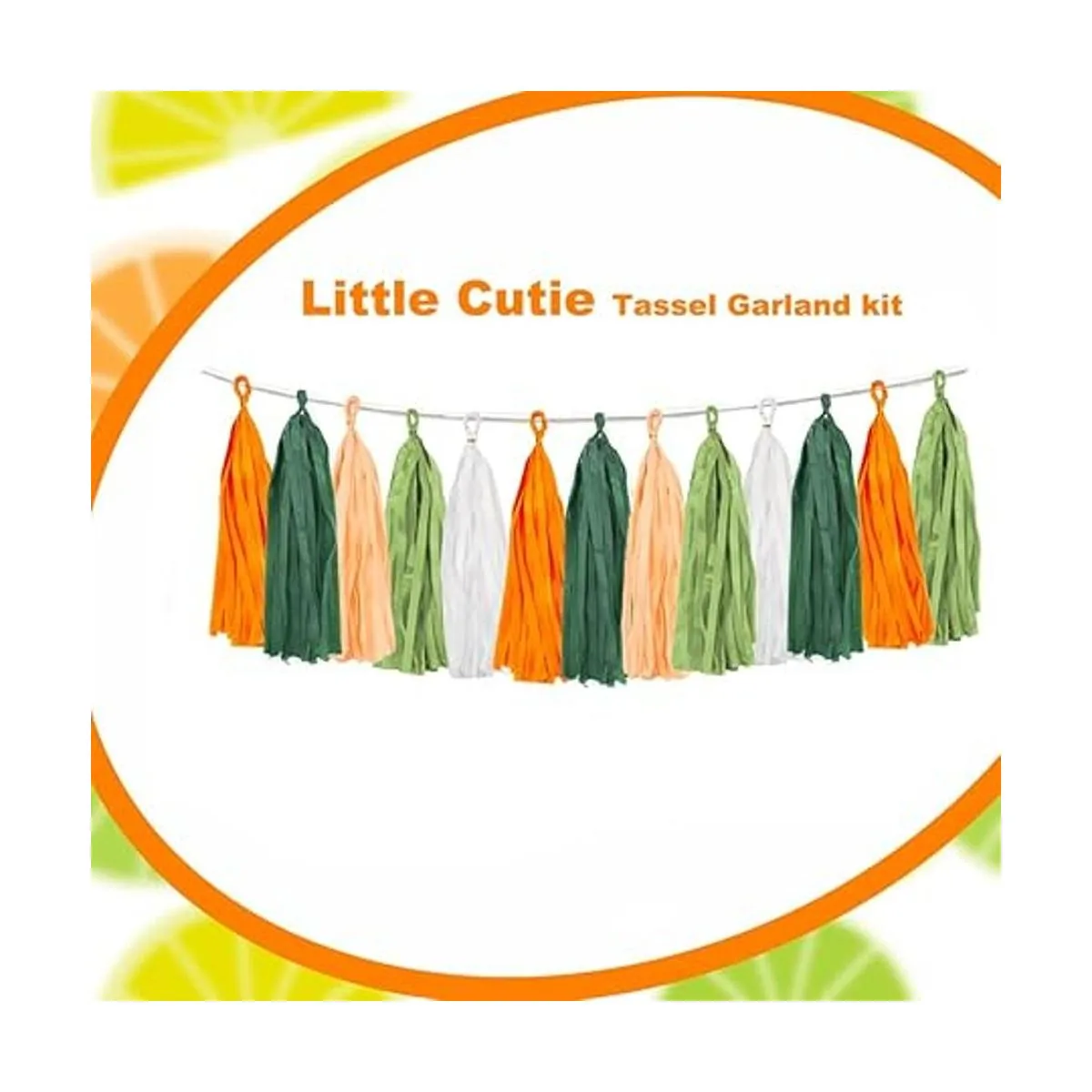 Kit de 25 guirnaldas de pañuelos de cítricos Little Cutie con borlas de pañuelos de bebé Hey Cutie, pancarta de mandarina, clementina, naranja, temática de fiesta de cumpleaños, boda, cuarto de bebé, decoración colgante de pared