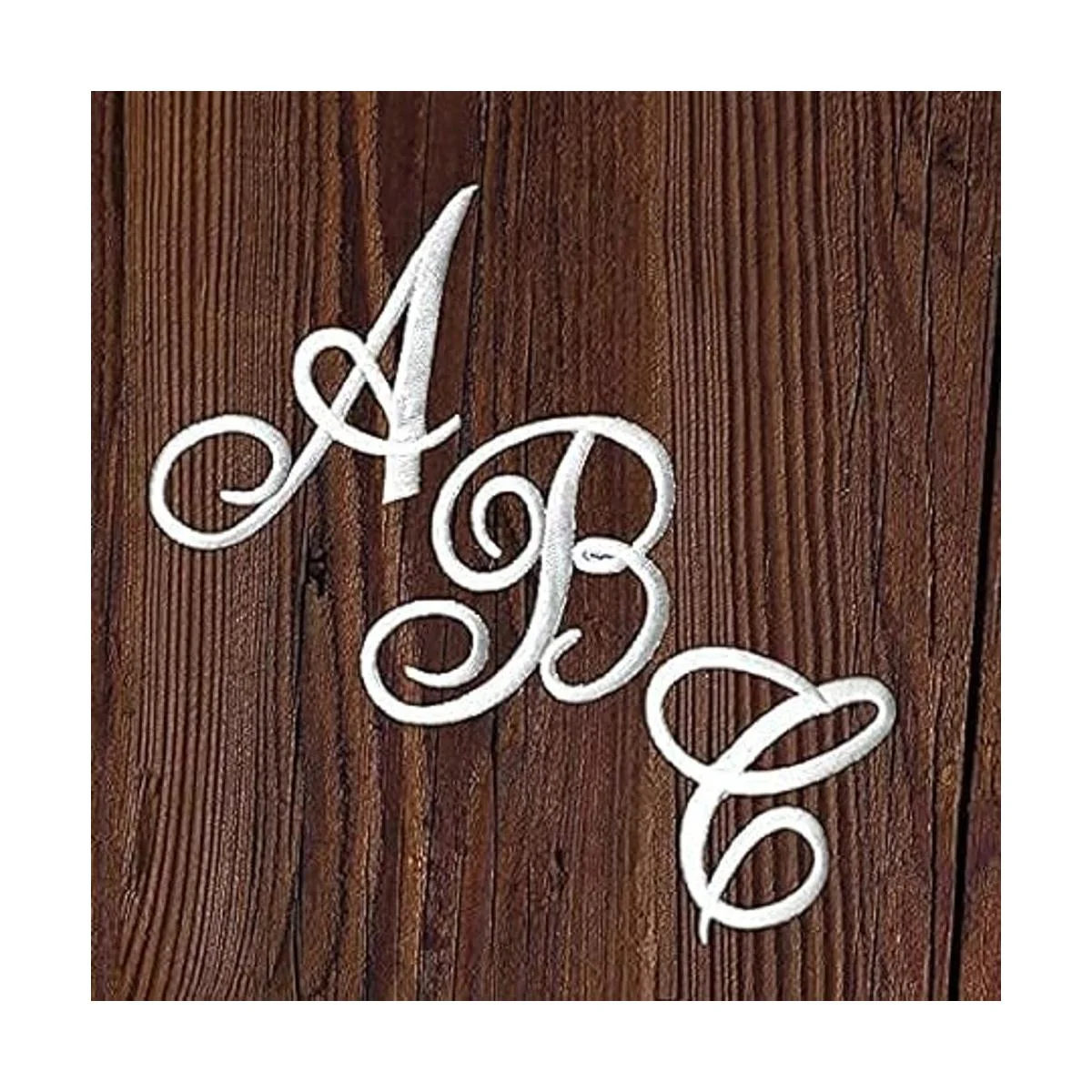 Kit de 26 piezas de parche de letras con monograma, apliques de planchado, el kit incluye las 26 letras cursivas para ropa, medias y mucho más grande, blanco
