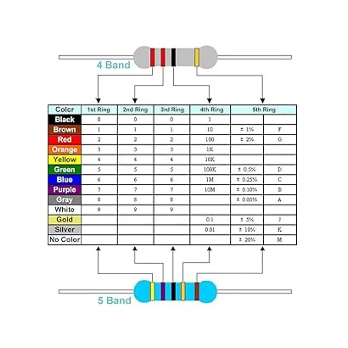 Resistencias de metal de película de alta calidad: anillo de cinco colores, la guía de código de color te ayuda a leer la resistencia. Kit surtido de resistencia de película metálica de 1/4 W 1, resistencias de versión mejorada con rango de tolerancia de 1, película de 1/4 W y pines de metal más gruesos para tener una mejor conexión y características de rendimiento estable que te ayudan a terminar el proyecto de experimentos eléctricos más rápido y sin problemas.