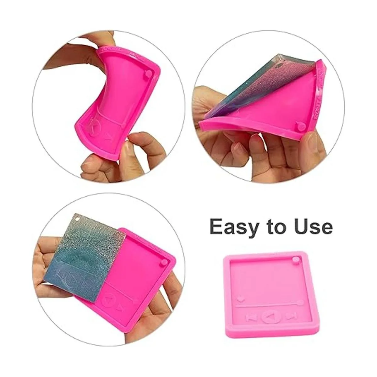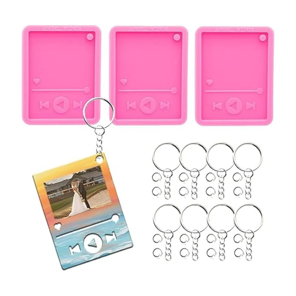 Kit de 33 moldes de resina epoxi, 3 moldes de silicona para reproductores multimedia para resina, moldes de fundición de resina epoxi, moldes de llavero de resina, llaveros, anillo de salto para llavero colgante de mochila, molde de arcilla polimérica