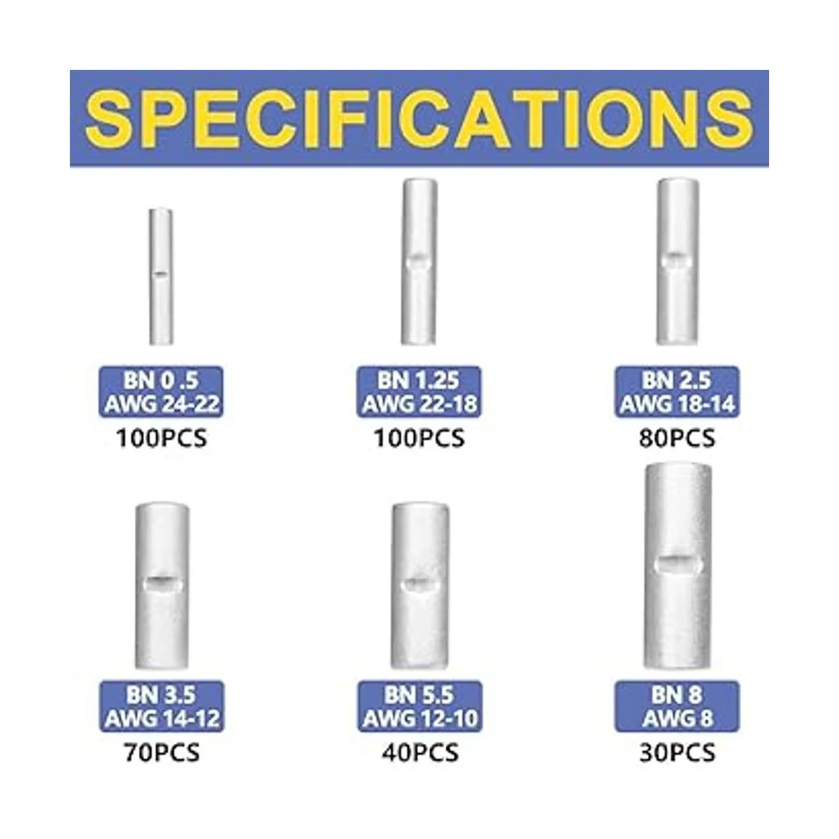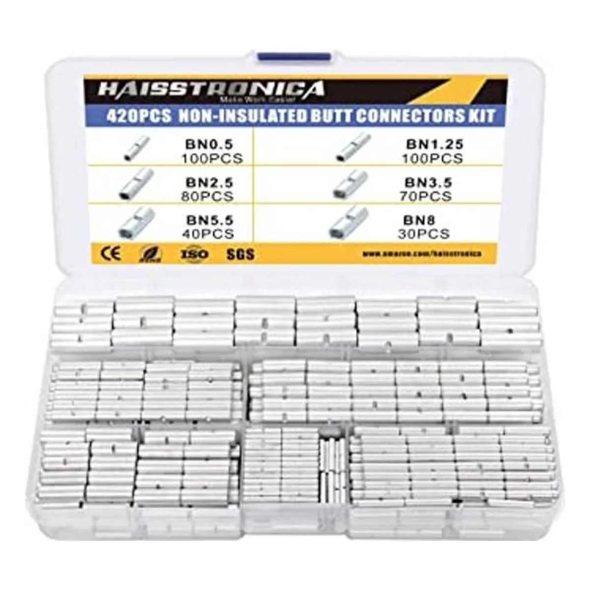 Kit de 420 conectores a tope no aislados, calibre 248, conectores de cable no aislados de cobre rojo estañado, terminales de crimpado eléctricos
