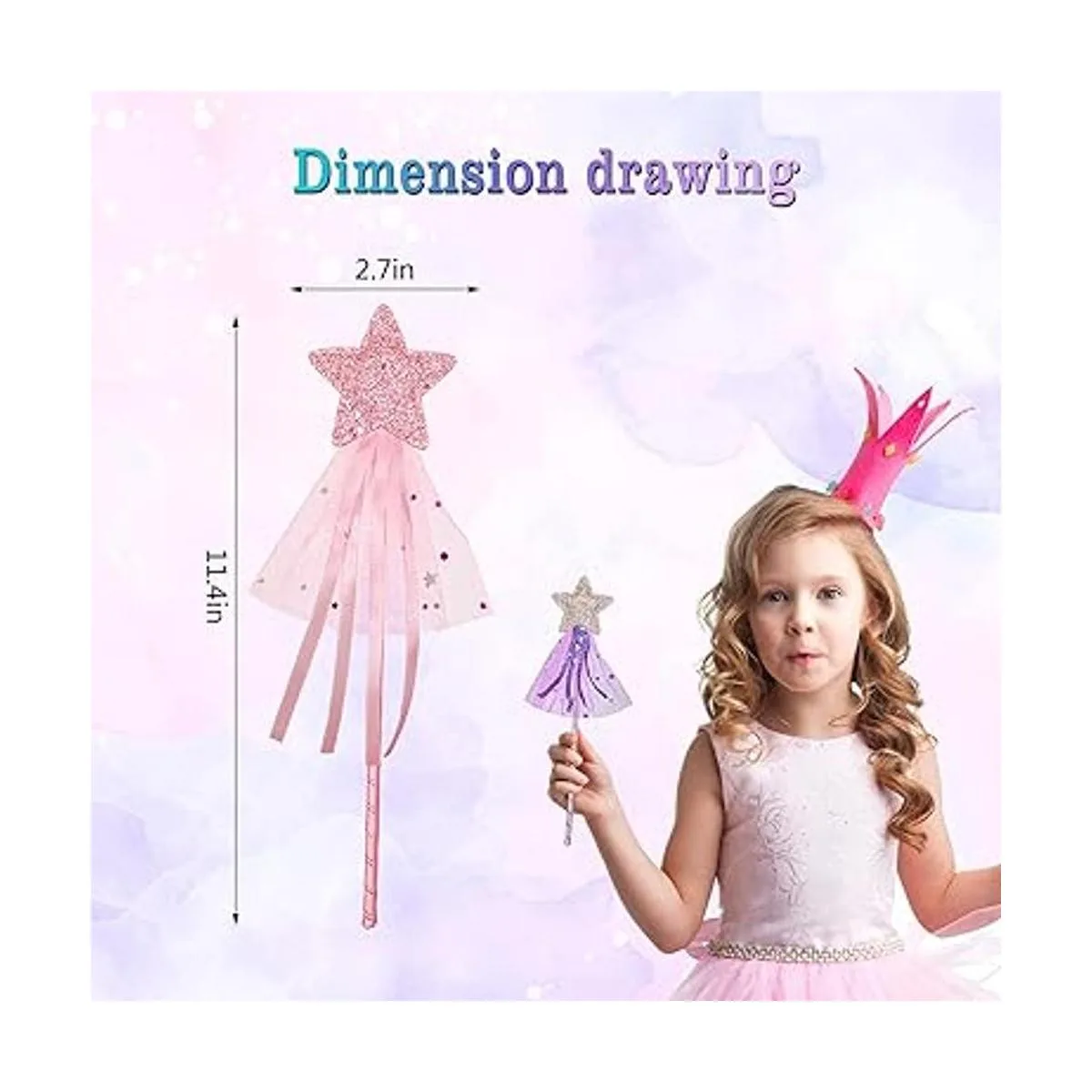 Diseño único: las varitas de princesa están diseñadas con estilo de estrella, combinadas con lentejuelas brillantes y cinta suave, pueden brillar bajo la luz, pueden vestir a tu hijo como una princesa adorable. También puede ser divertidos regalos de vacaciones, como regalos de Navidad y Halloween, o regalos de cumpleaños.