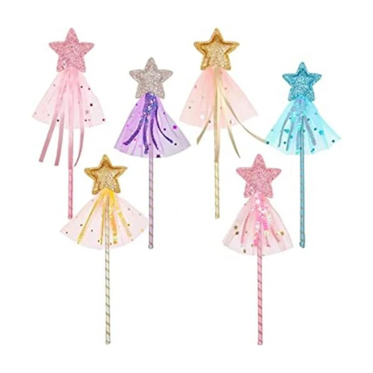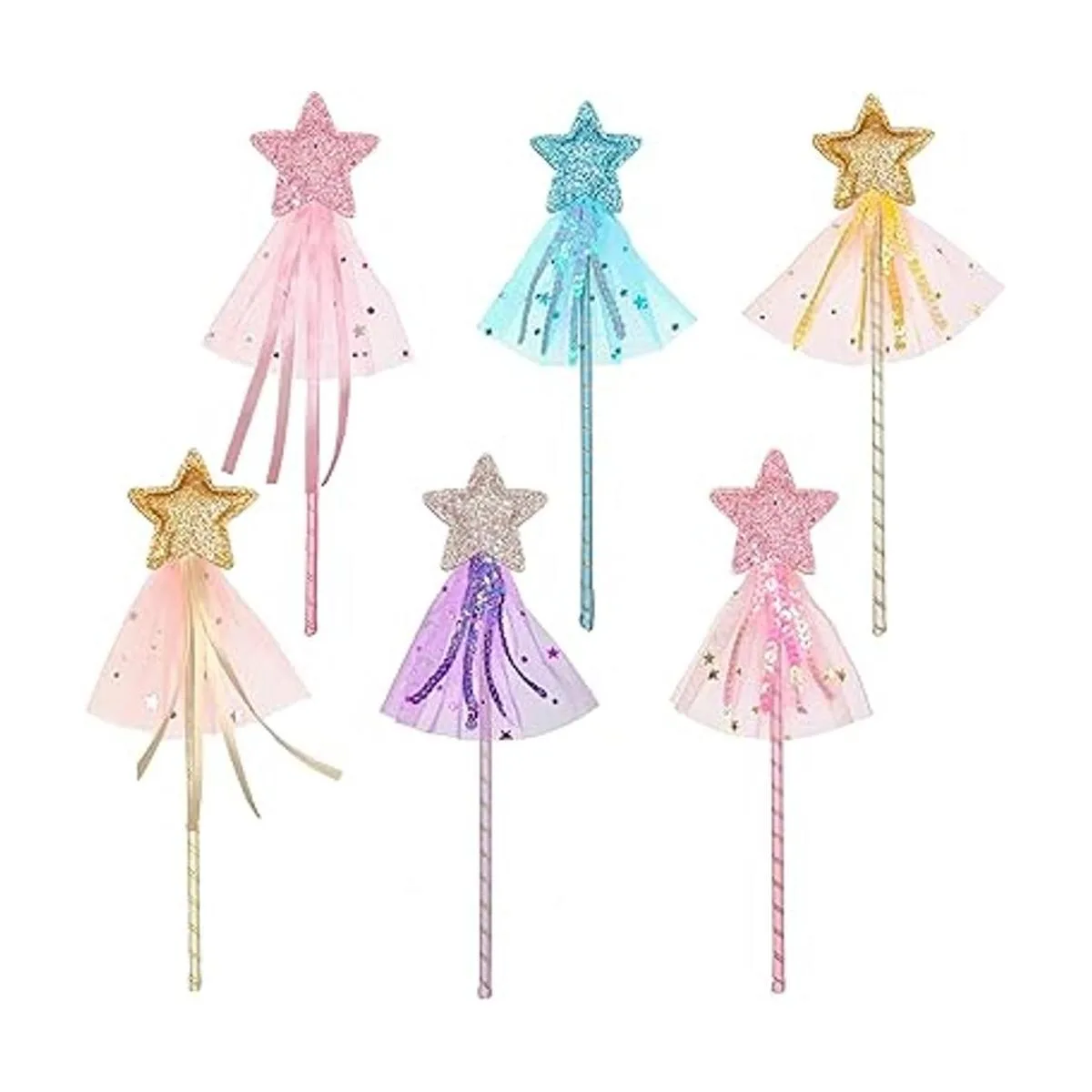 Kit de 6 varitas de princesa con purpurina para niñas, varita de hadas y estrella, varita mágica de hadas para niñas, disfraz de princesa, juego de rol, espectáculos mágicos, cosplay, fiesta de cumpleaños
