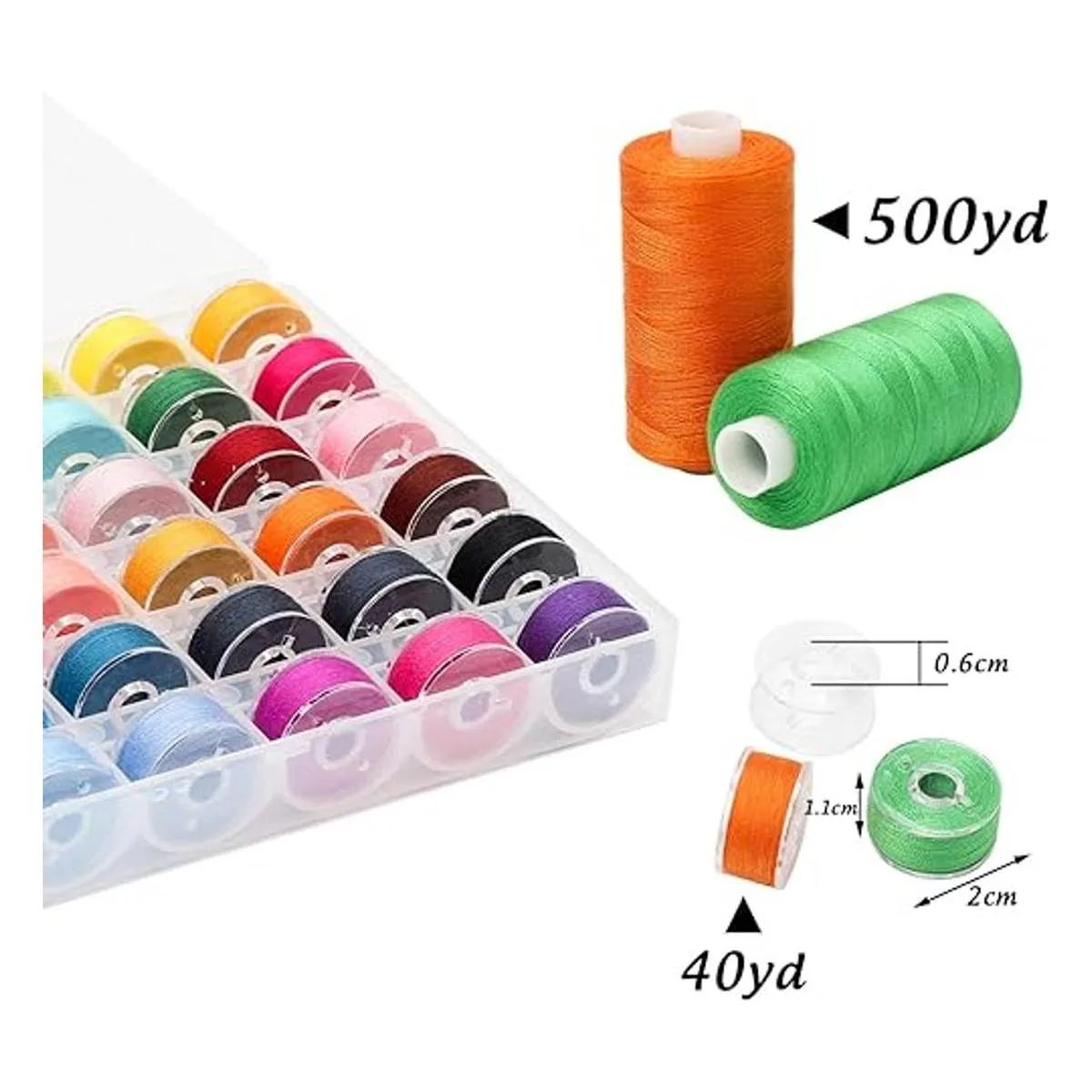 El kit de hilo de coser con bobinas viene con 36 colores de 500 yardas por bobina, hilo de coser 100 poliéster tanto para costura a mano como para uso de costura a máquina, y una caja de 36 bobinas preenrolladas de colores correspondientes, fácil de transportar y opción ideal para trabajos de costura diarios