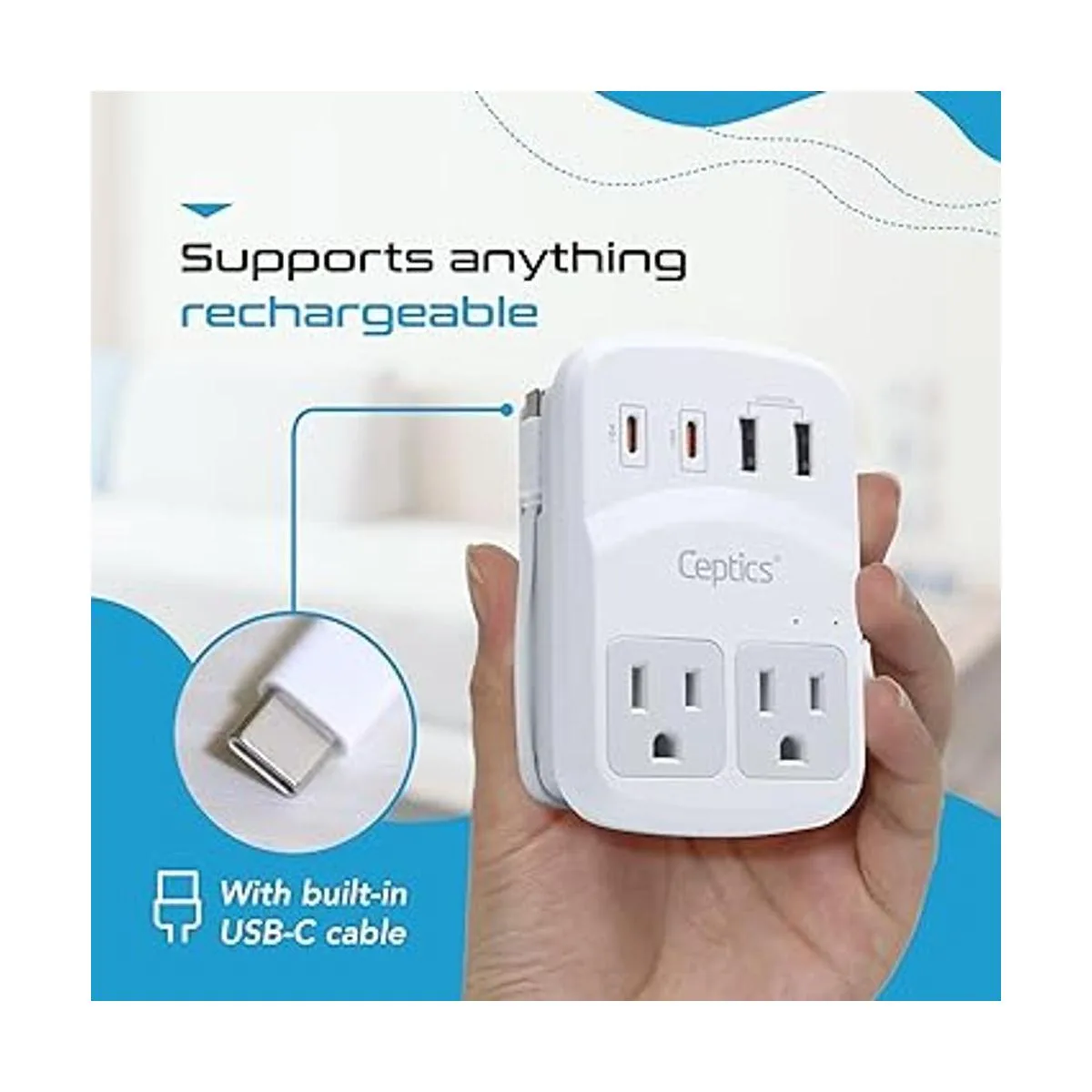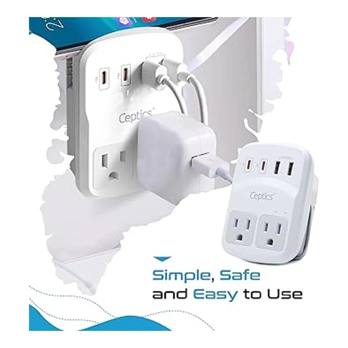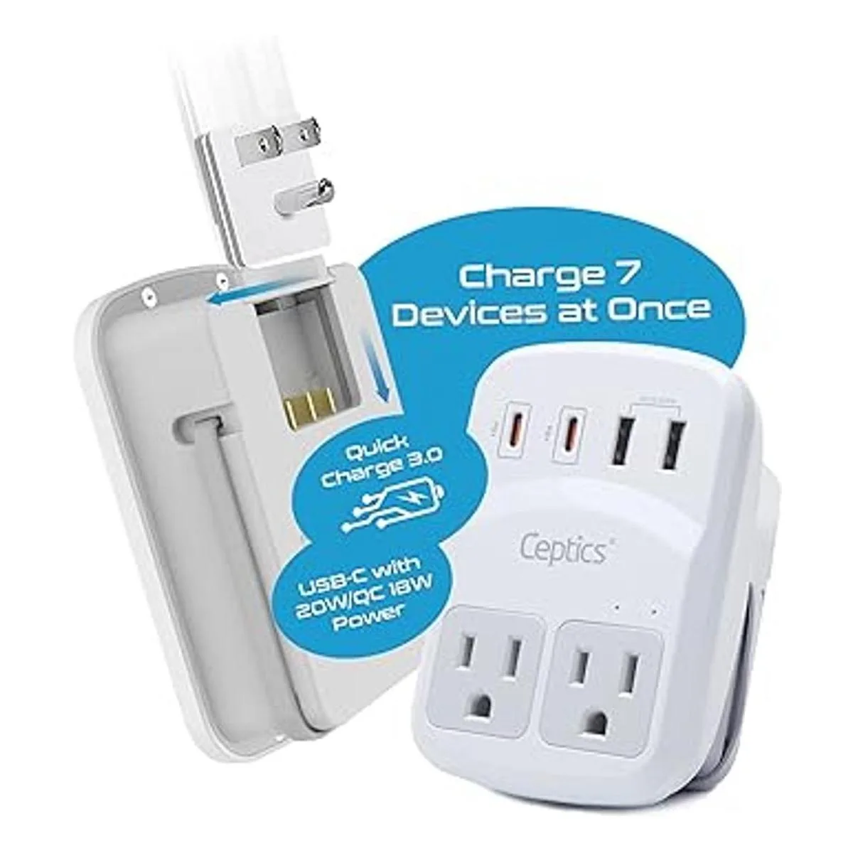 Kit de adaptador de viaje mundial de Ceptics 2 USBA, enchufes USBC de EE. UU., entrega de energía de 20 WQC de 18 W, protección contra sobretensiones, compatible con Europa, Reino Unido, China, Australia, Japón Perfect Laptop WPS5B
