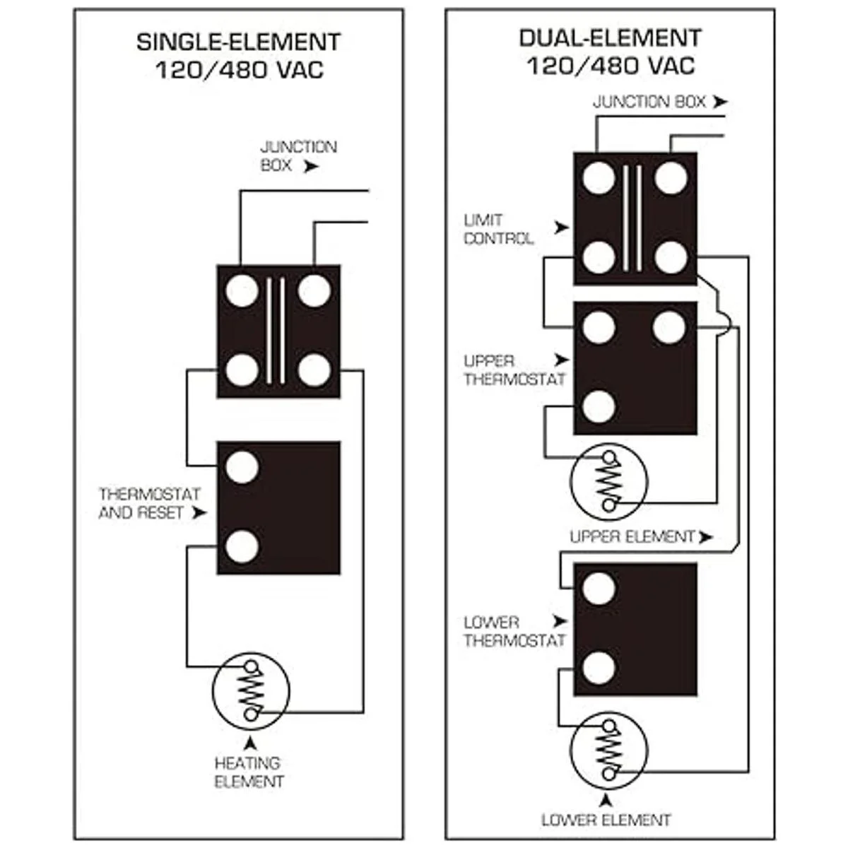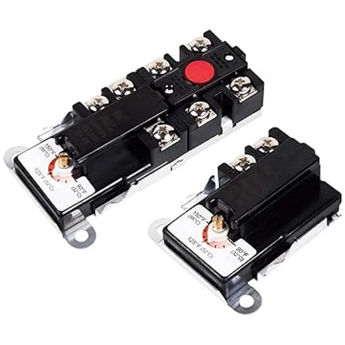 Termostatos: contiene termostato de elemento superior e inferior con dos protectores. 120 V 480 V, rango de ajuste de temperatura: 90 F 150 F. Estilo termoodisco TOD, se puede intercambiar con estilo Apcom.