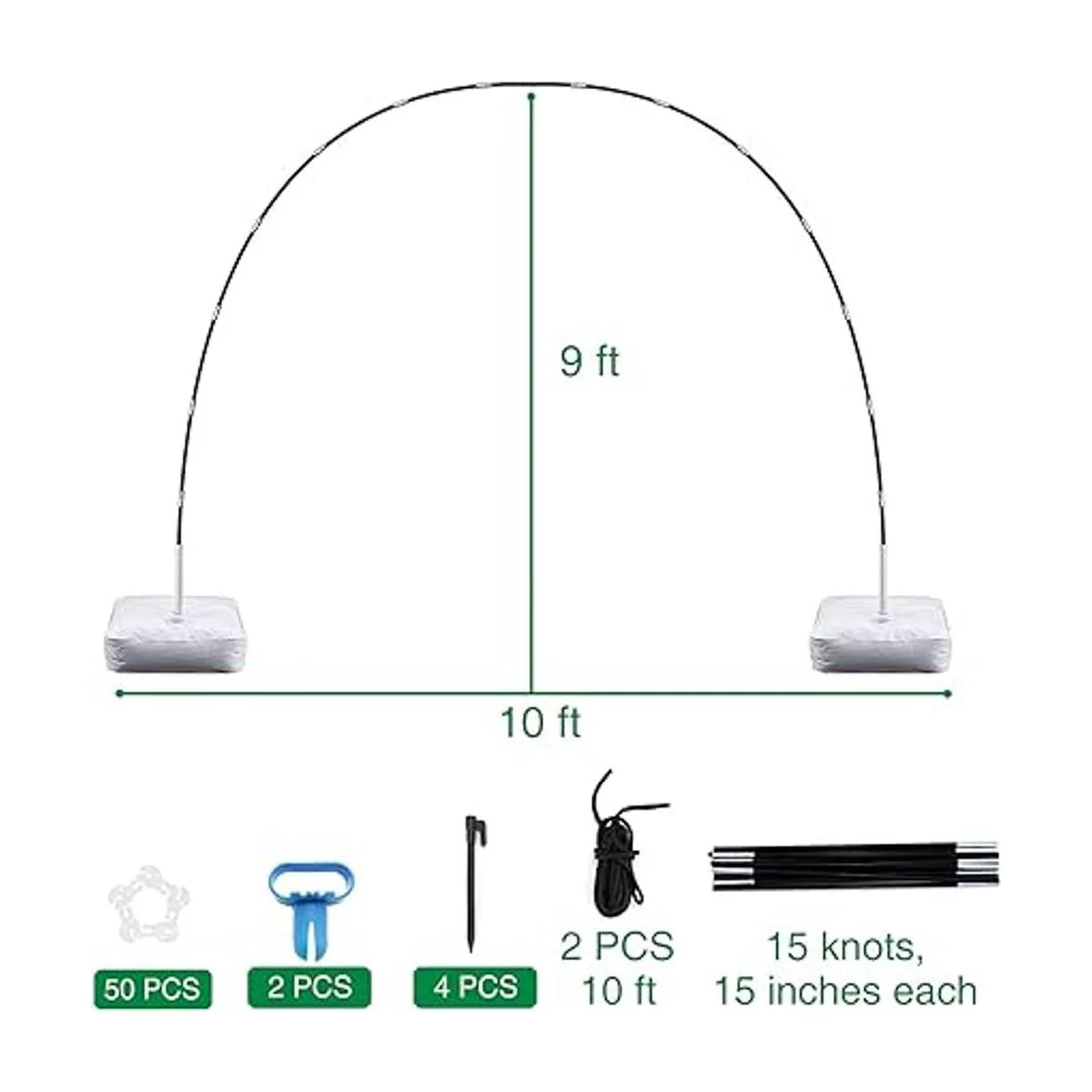 Ajustable: la altura es de aproximadamente 9 pies y el ancho es de aproximadamente 10 pies. La altura y el ancho del arco se pueden completar ajustando la distancia entre las bases.