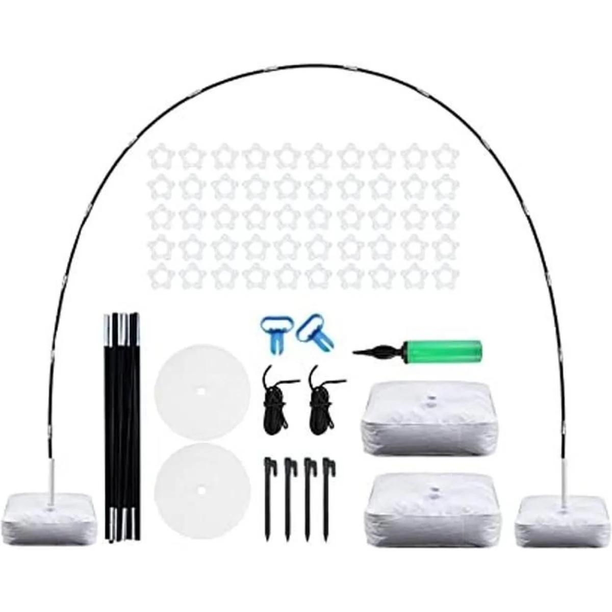 El paquete incluye: el kit de arco de globos contiene 15 varillas de fibra y está equipado con 2 bases de plástico, que son duraderas. Con el fin de hacer que el arco del globo sea más estable, también estamos equipados con dos bolsas de inyección de agua.