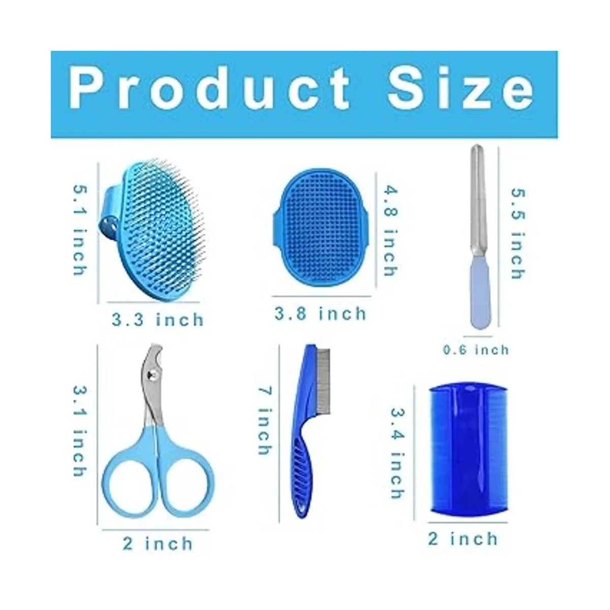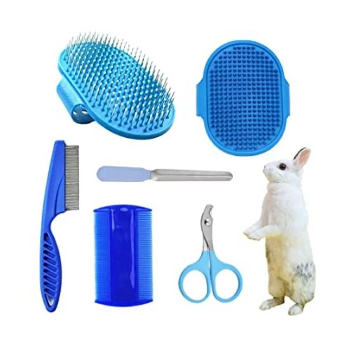 Kit de aseo para conejos de 6 piezas incluido cepillo de aseo de conejo, removedor de pelo para mascotas, champú para mascotas, peine de doble cara, cortaúñas para mascotas y recortadora para conejos, conejitos de hámster y cobayas, azul