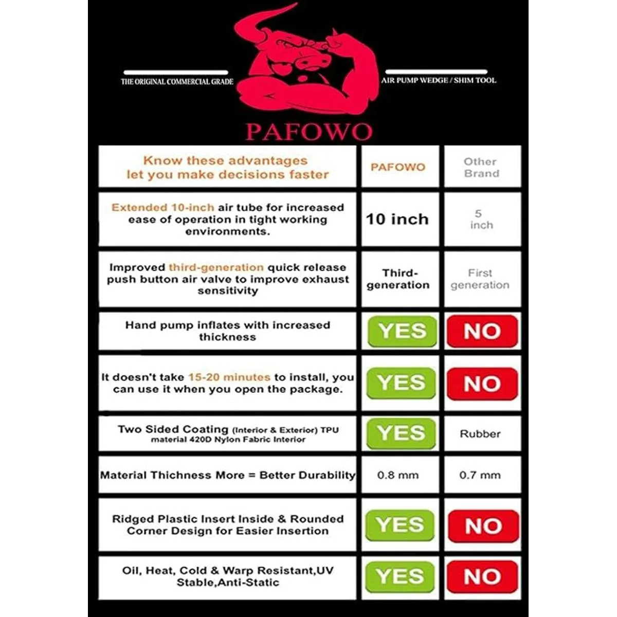 Mejora de accesorios: 2 herramientas de palanca antiarañazos gratis. Manguera alargada a 10 pulgadas. Actualiza la válvula de aire de botón de tercera generación, más gruesa y duradera, nivelación precisa