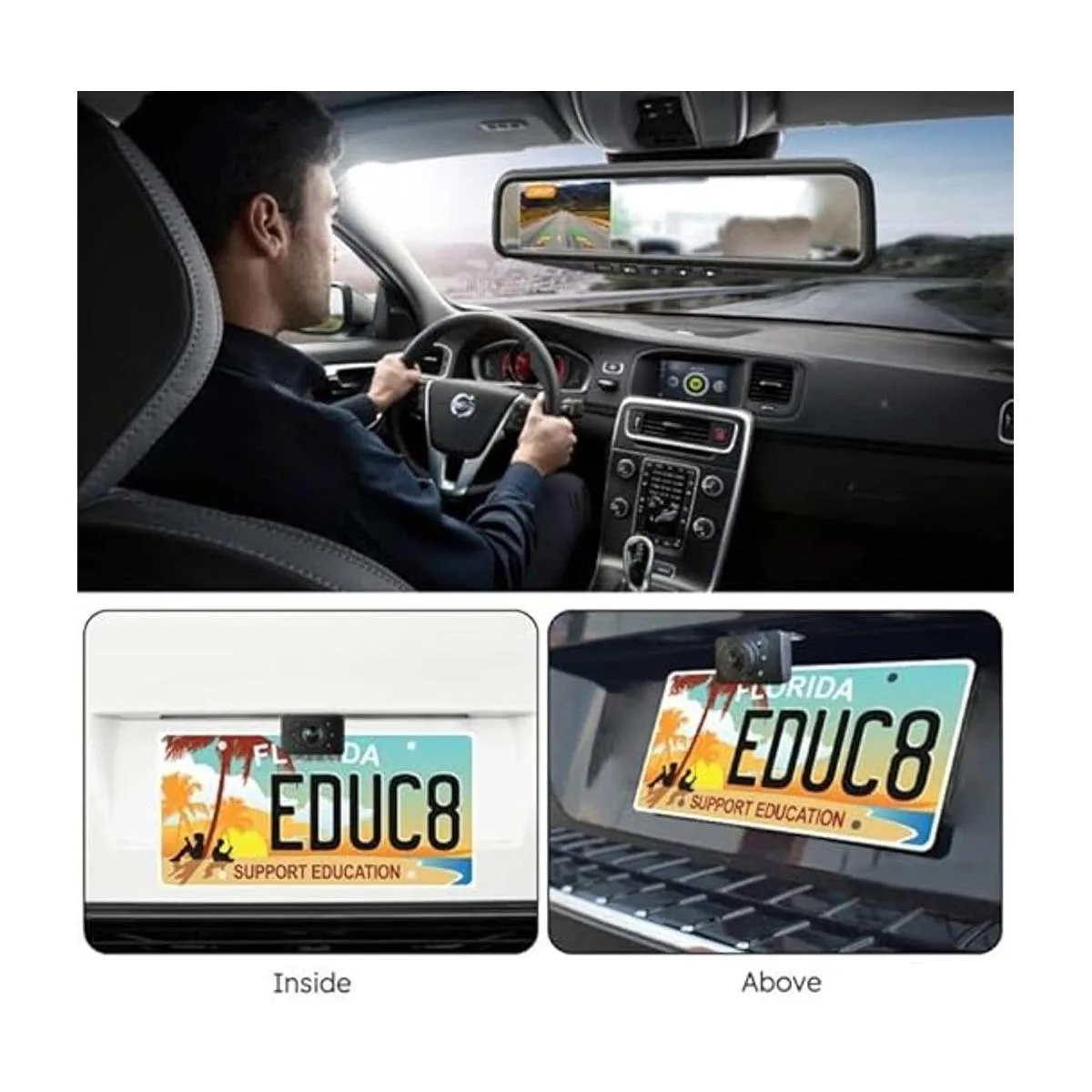 Kit de cámara de respaldo de coche con cable HD 1080P, visión continua o inversa, monitor de espejo con clip de 4.3 pulgadas con visión nocturna impermeable, cámara de matrícula para automóvil, camioneta, SUV, remolque