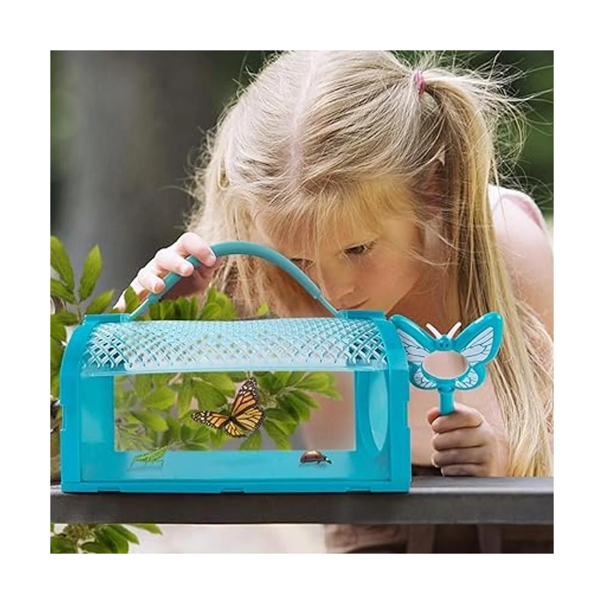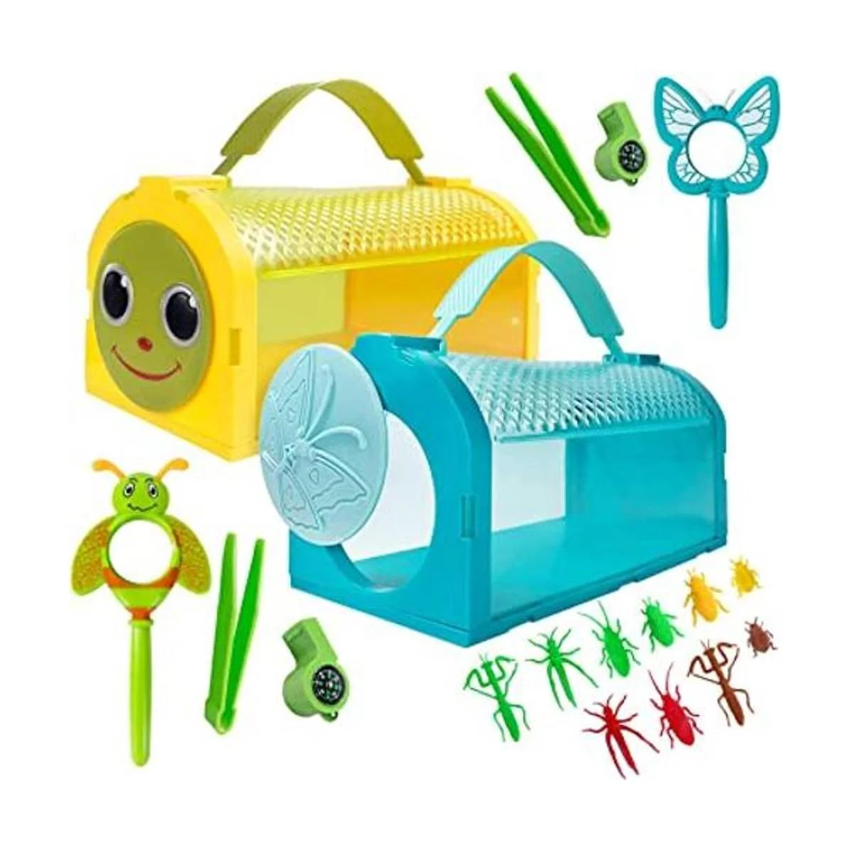 Kit de captura de insectos, regalo de juguete al aire libre para niños de 3, 4, 5, 6, 7, 8 años en adelante, 2 piezas de mariposa de jaula de bichos, kit de explorador al aire libre con silbatos para exploración de patio trasero