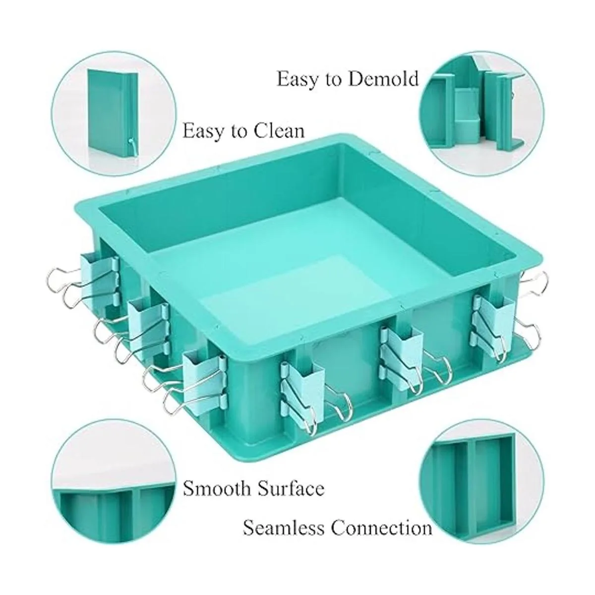 Fácil de usar: con diferentes combinaciones, la carcasa del molde de goma de silicona se puede montar en 5 tamaños de rectángulos y 3 tamaños de cuadrados. Alto grado de libertad, hace fácilmente cualquier tamaño de moldes de silicona de acuerdo a tus necesidades.