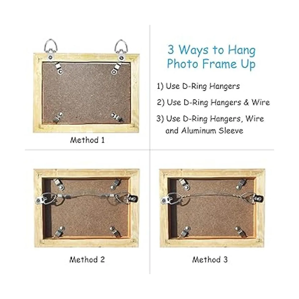 Variedad de métodos de instalación. Hay 3 métodos para colgar un marco de fotos con nuestro kit para colgar, lo que hace que sea fácil de usar.