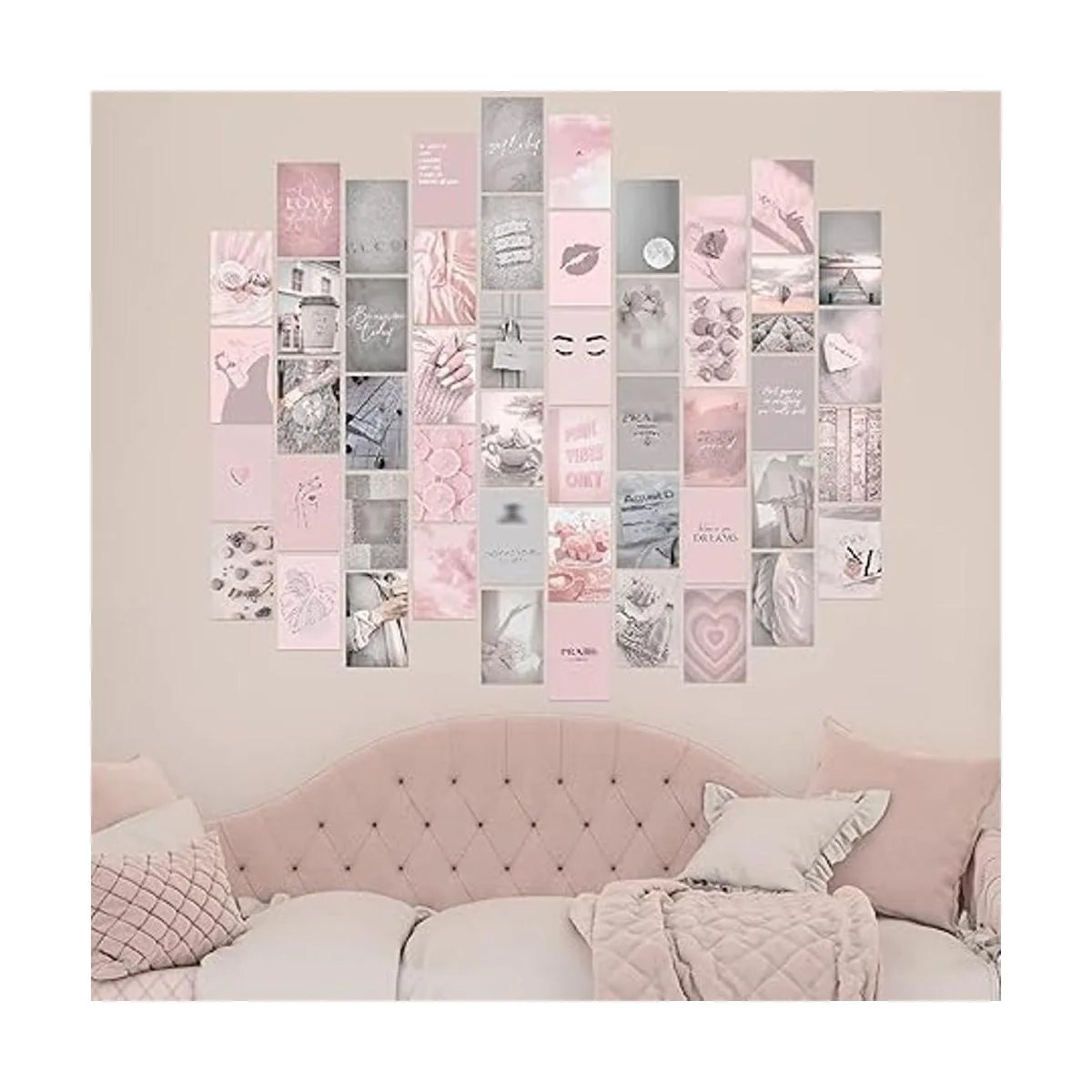 Kit de collage de pared estética de decoración de habitación rosa y gris, decoración de habitación rosa y gris para adolescentes VSCO 50 juegos de 4 x 6 pulgadas