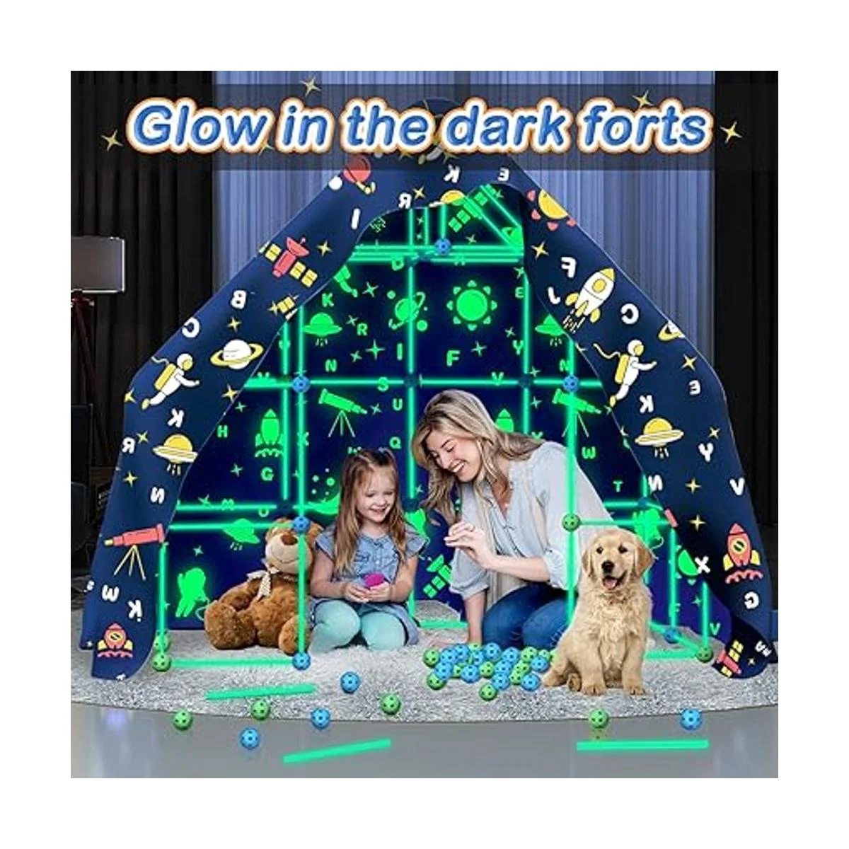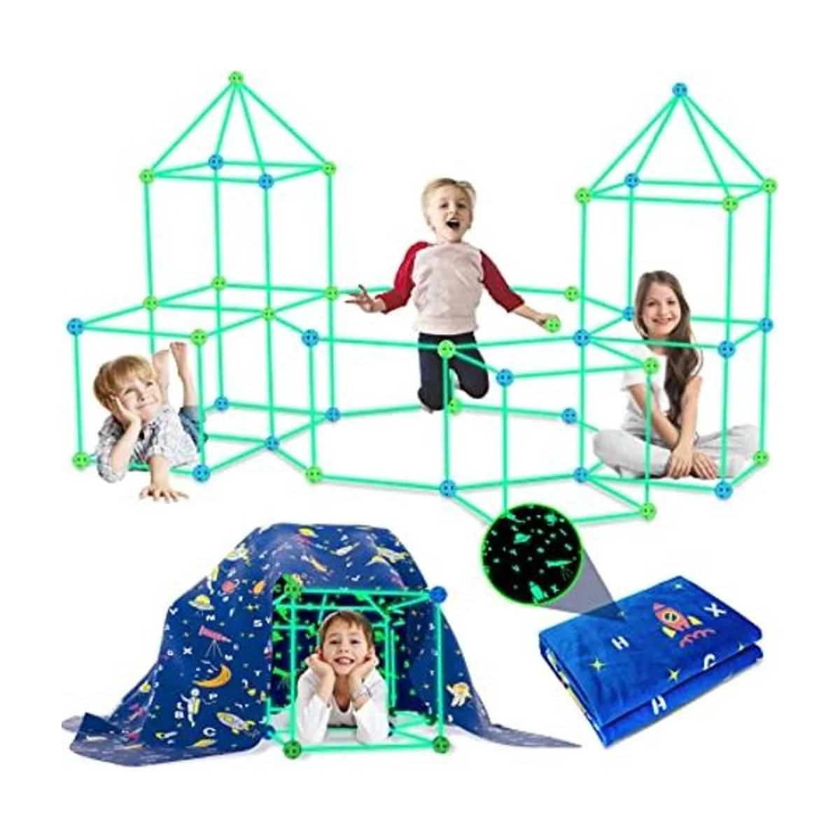 Kit de construcción de fortaleza para niños, 160 unidades, que brilla en la oscuridad, construye un fuerte con manta, juguetes educativos STEM para 4, 5, 6, 7, 8, 9, 10, 11, 12 años, para niños y niñas, regalo definitivo de construcción, conjunto de fortalezas para interiores y exteriores