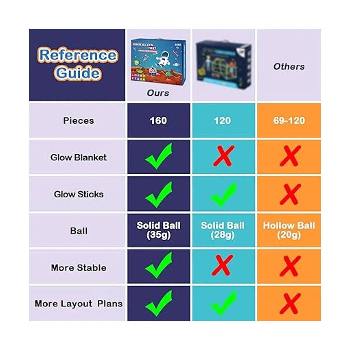 Regalo educativo ideal para niños: los juguetes de construcción de fuertes STEM incluyen 100 varillas brillantes, 30 bolas sólidas azules, 30 bolas sólidas verdes y 1 manta brillante larga: 118 pulgadas, ancho: 94.5 pulgadas. En comparación con otros juguetes de construcción de fuertes para niños en el mercado, 160 kits de construcción de fuertes para satisfacer las necesidades de los niños para construir fuertes de todas las formas y tamaños Una gran manta puede cubrir cualquier forma de fuerte Los kits de fortalecimiento de construcción son el regalo ideal para niños y niñas de 4, 5, 6, 7, 8, 9, 10, 11 y 12 años.
