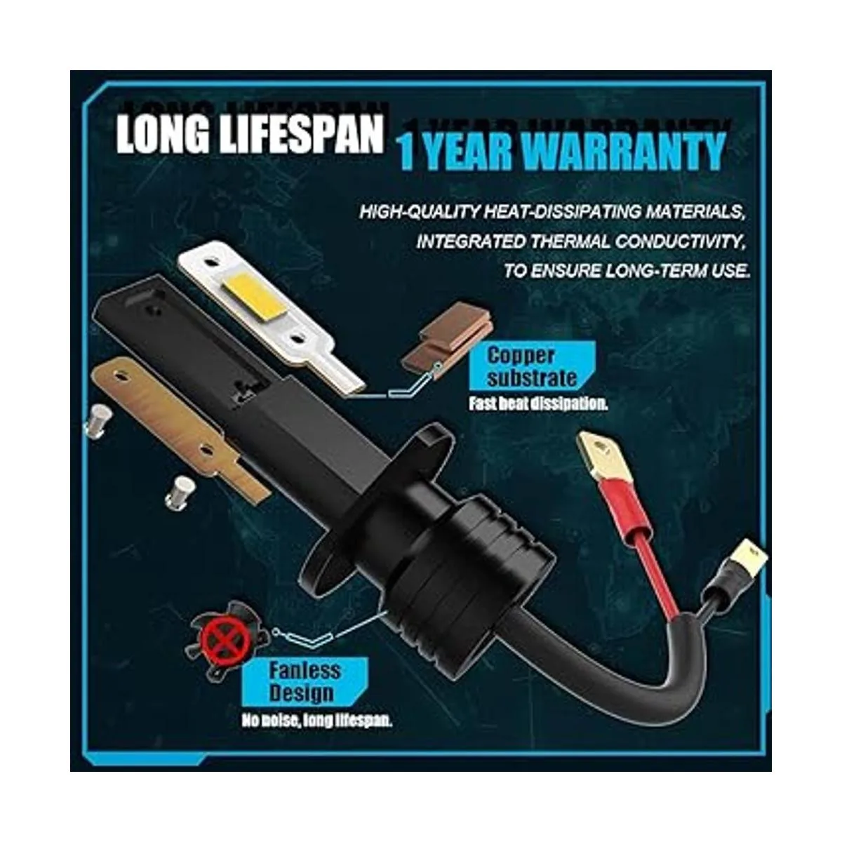 Larga vida útil. 1 año de garantía del producto. Nuestra bombilla LED H1 utiliza múltiples tecnologías de refrigeración. Perfil de aluminio de aviación, transferencia de calor más rápida. Cuerpo de lámpara integrado, conducción general del calor. Controlador inteligente de control de temperatura, control de temperatura en tiempo real.