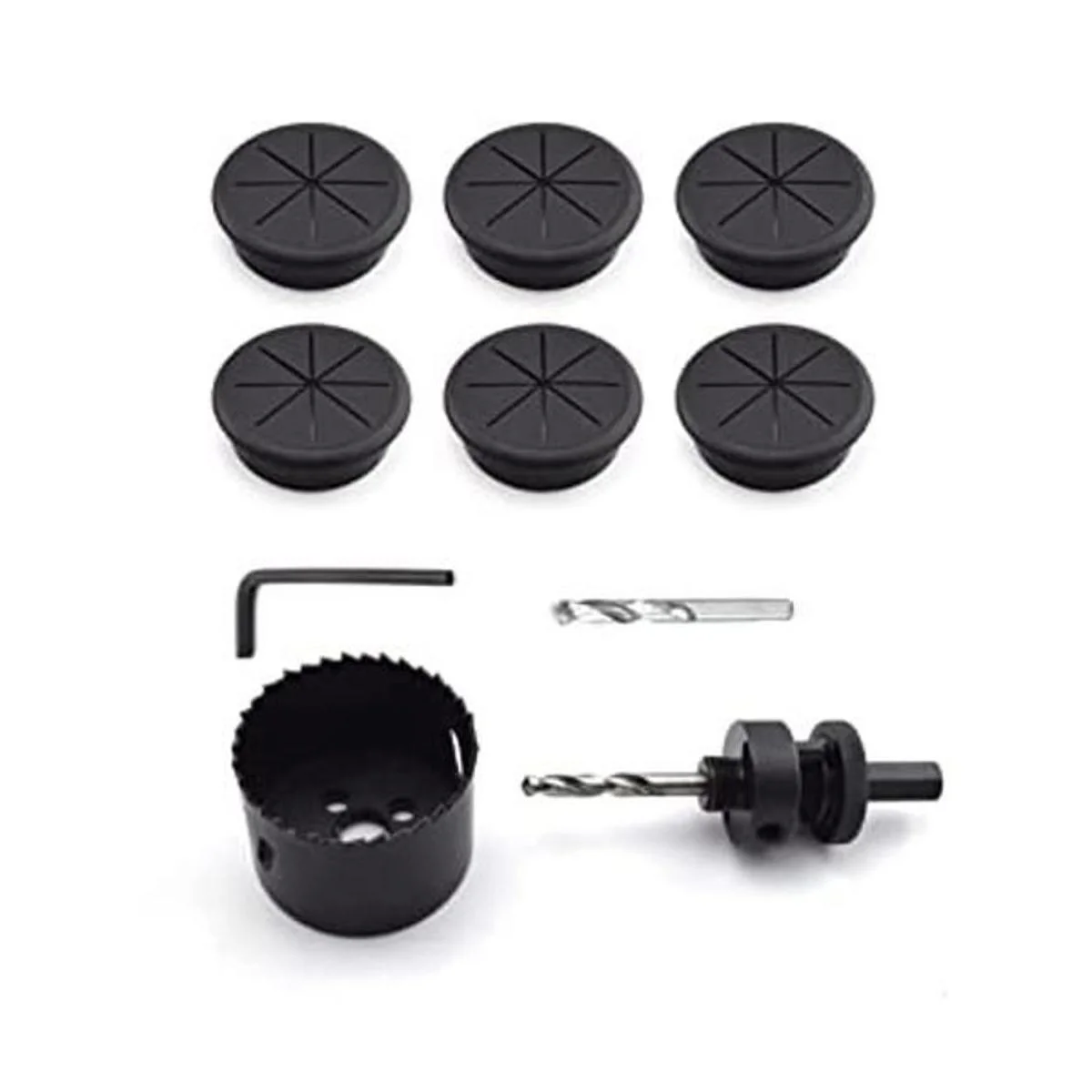 Kit de cubierta de agujero para escritorio y sierra de agujero, cubierta de cable de escritorio con brocas de sierra de agujero bimetálica a juego para organizar cables, cables y cables en equipos de oficina, computadora, 2 pulgadas, 1 juego