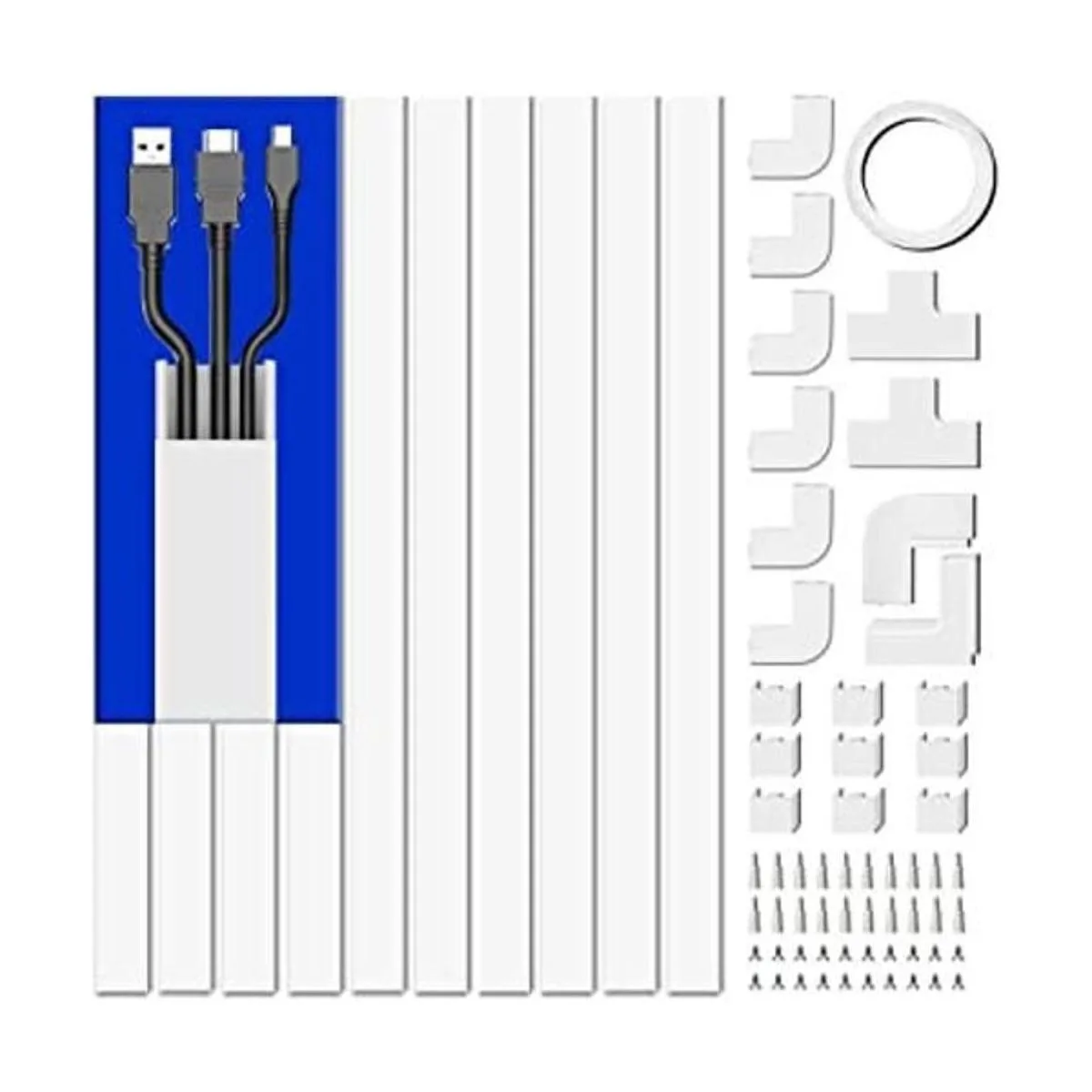Kit de cubiertas para cables de 157″, canal de cubierta para cable, sistema para ocultar cables de montaje en pared para TV casa oficina, 10 unidades de 15.7″ largo x 0.95″ ancho x 0.55″, color blanco