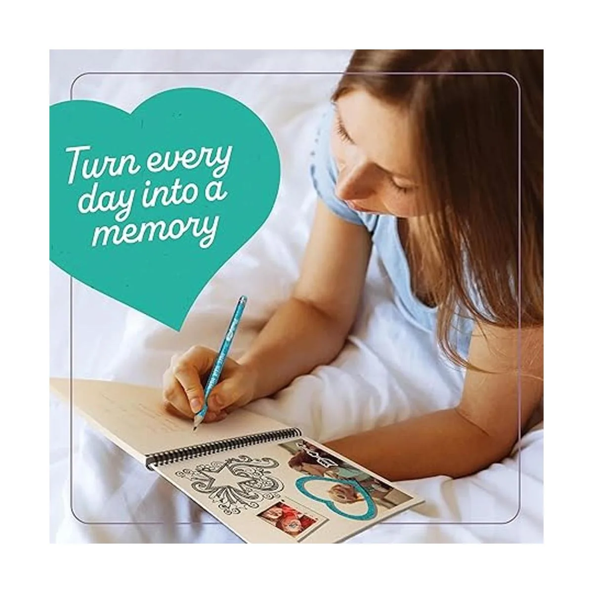 Deja que tu creatividad brille. Con papeles estampados de moda, divertidos marcos de aglomerado y cinta brillante con purpurina, podrás decorar de forma única las 70 páginas. Las posibilidades son infinitas Completa con formas, bordes, marcadores, clips de papel y, por supuesto, el encanto.