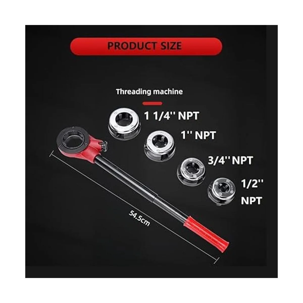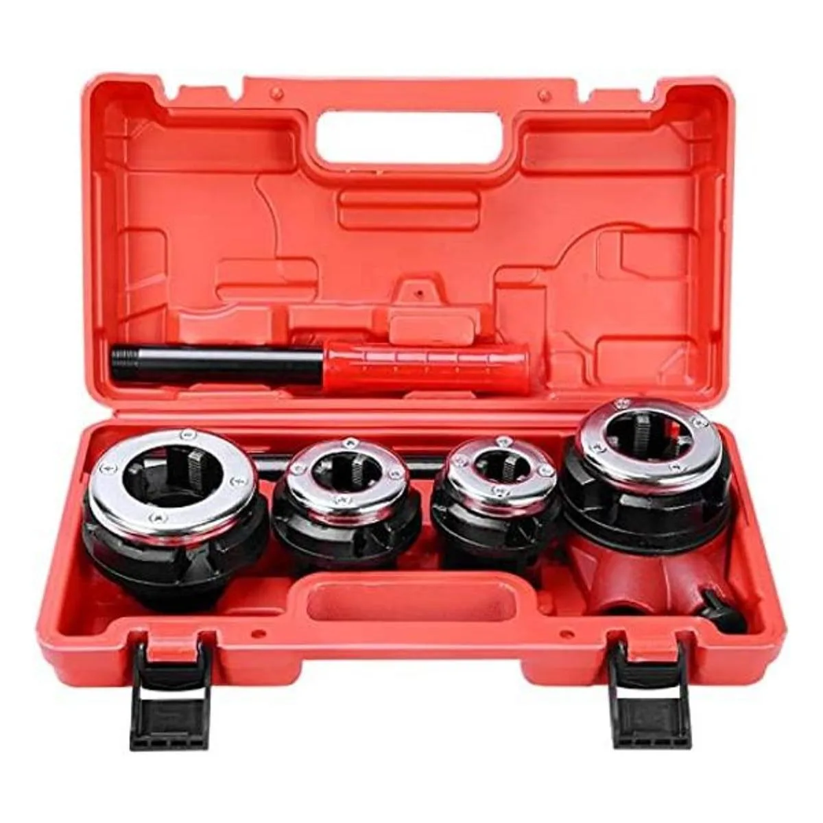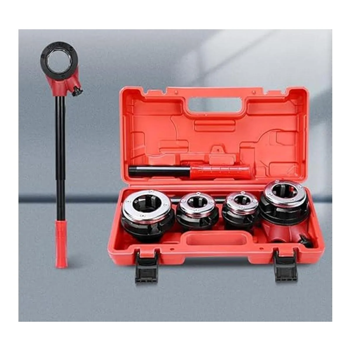 Kit de enhebrado de tubos, juego de roscado manual de tuberías de fontanero, juego de herramientas de roscado de tubos de trinquete con caja de almacenamiento 4 troqueles de 12 pulgadas 34 pulgadas 114 pulgadas