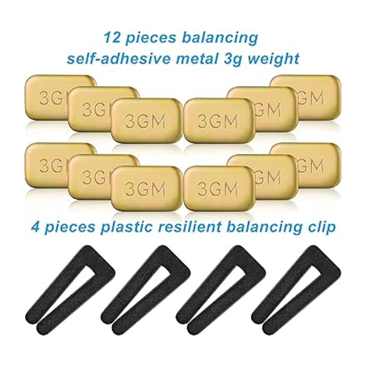 Función específica: el clip de equilibrio de plástico hace que sea más fácil localizar el área problemática y 3 pesos 3G autoadhesivos para ayudar a corregir el tambaleo, los pesos permanentes están asegurados con un adhesivo muy pegajoso que no viene libre