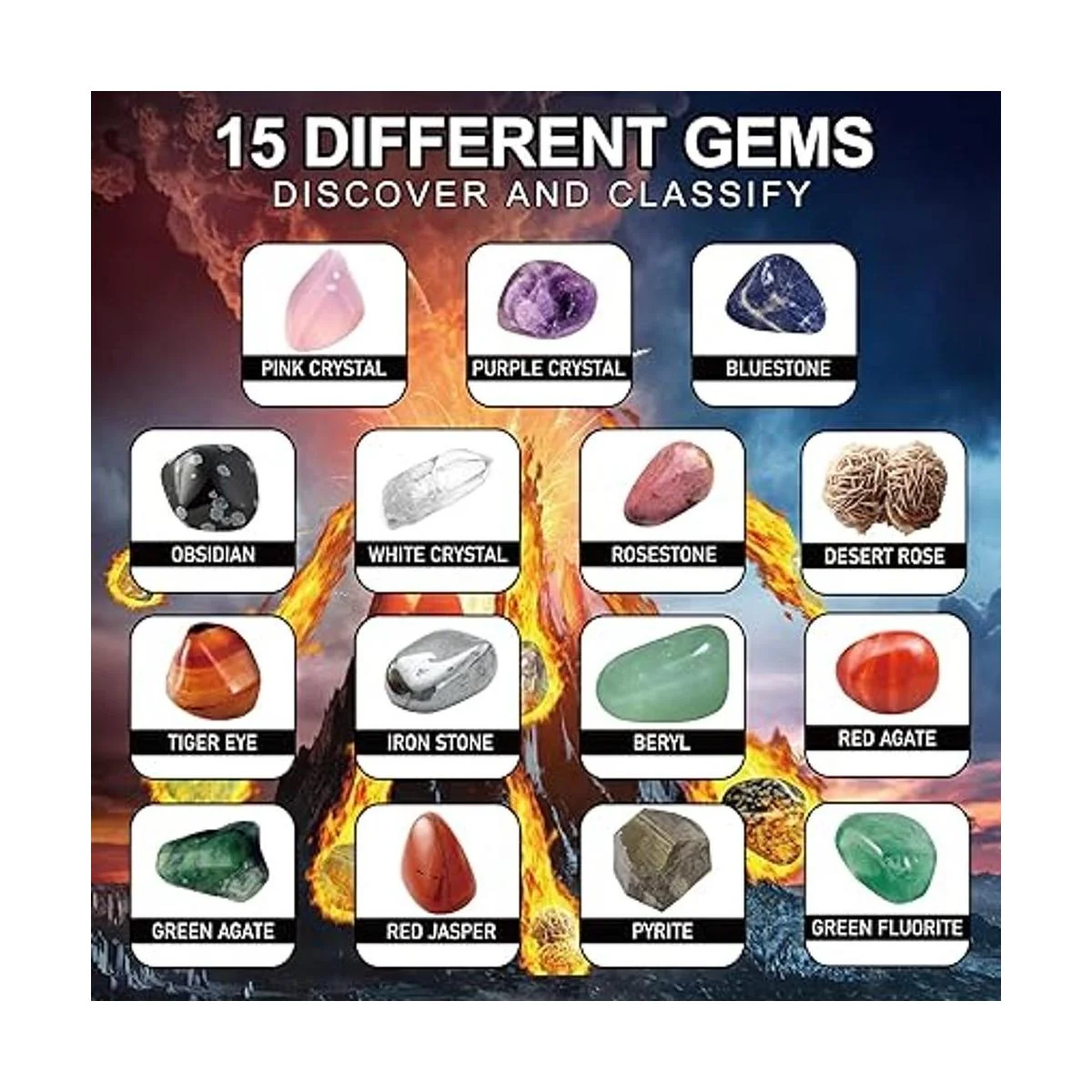 Kit de excavación de Mega piedras preciosas Desenterrar 15 piedras preciosas reales, kit de colección de rocas, minerales volcánicos, kit de excavación de actividades para niños, actividades para niños, juguetes educativos y ciencias STEM para niños de 6 a 8 años de 8 a 12 años