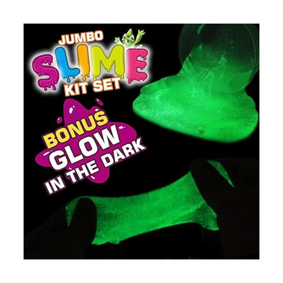 El juego de juguetes de limo gigante ahora viene con 2 paquetes de polvos que brillan en la oscuridad Los niños simplemente mezclan el polvo brillante en el slime como otros accesorios de slime, y obtendrán un slime que brilla en la oscuridad.