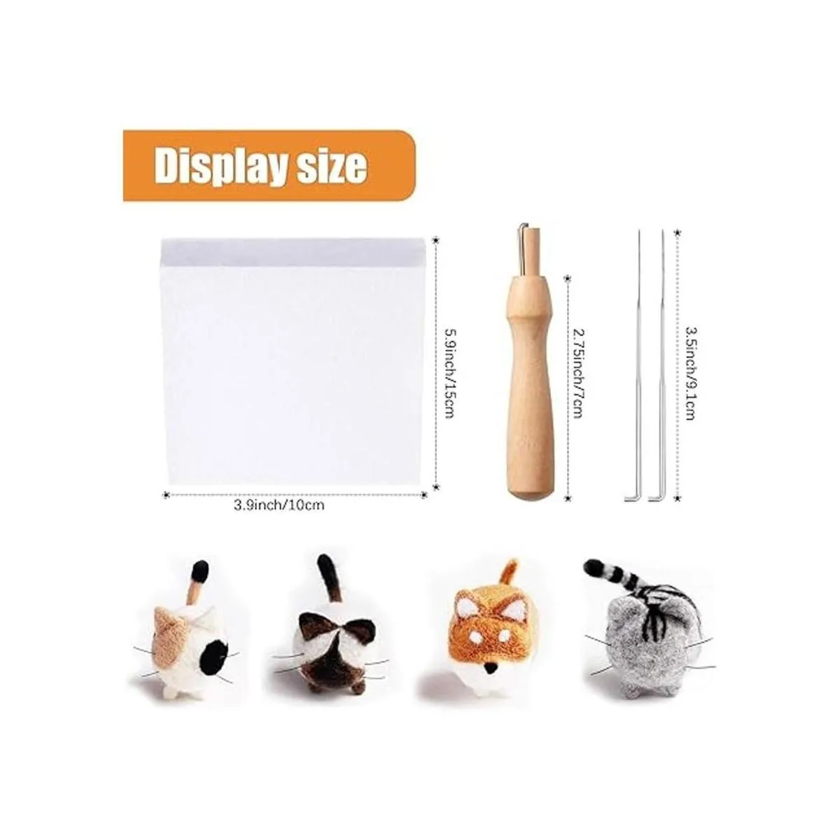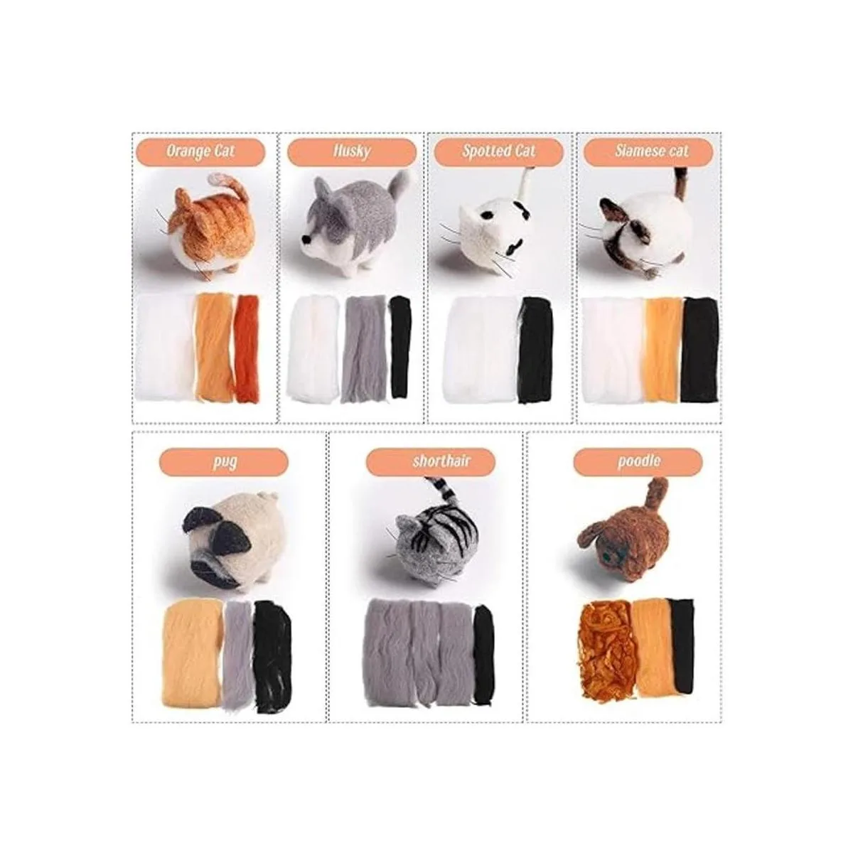 Kit de iniciación de fieltro de aguja: viene con 10 bolsas de material para hacer perros y gatos, 10 instrucciones idioma español no garantizado, 12 agujas de fieltro, cuna, herramienta de fieltro de madera, alfombrilla de fieltro, total 35 herramientas en el paquete, y puede ser un bonito juego de regalo para tu madre, hijo, amigo