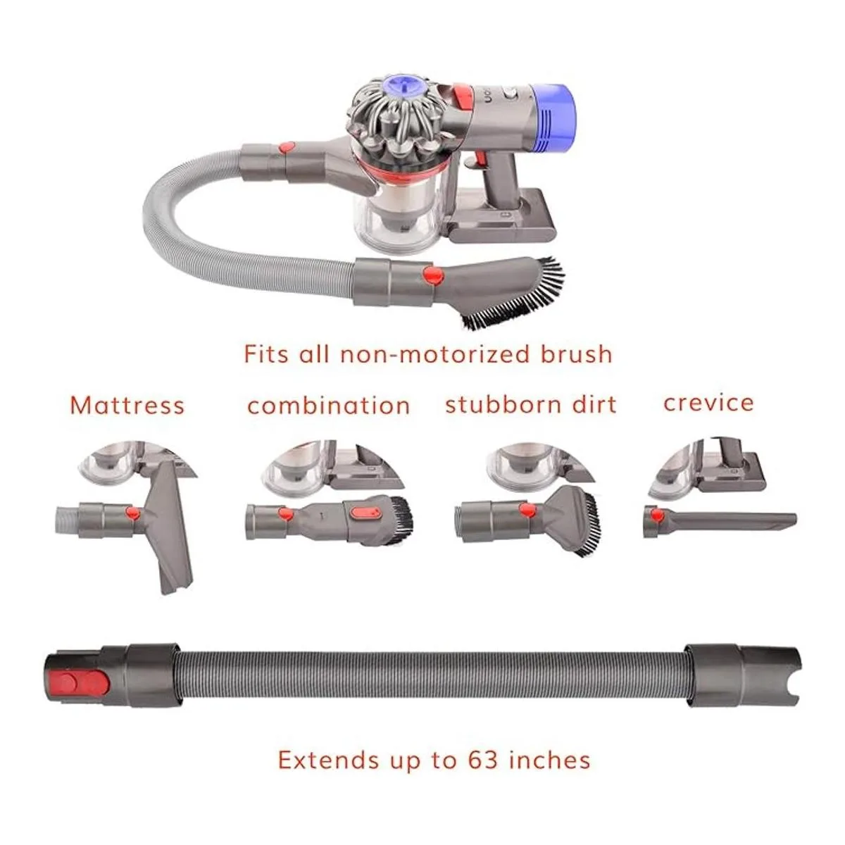 Se conecta directamente con la liberación rápida: se puede conectar directamente a la aspiradora Dyson V15 V8 V7 V10 V11, no necesita adaptador adicional. Cada cepillo está equipado con botón de liberación rápida.