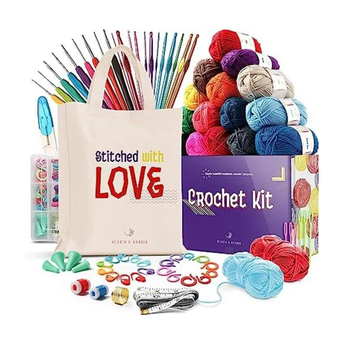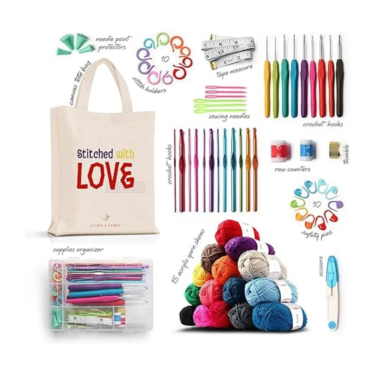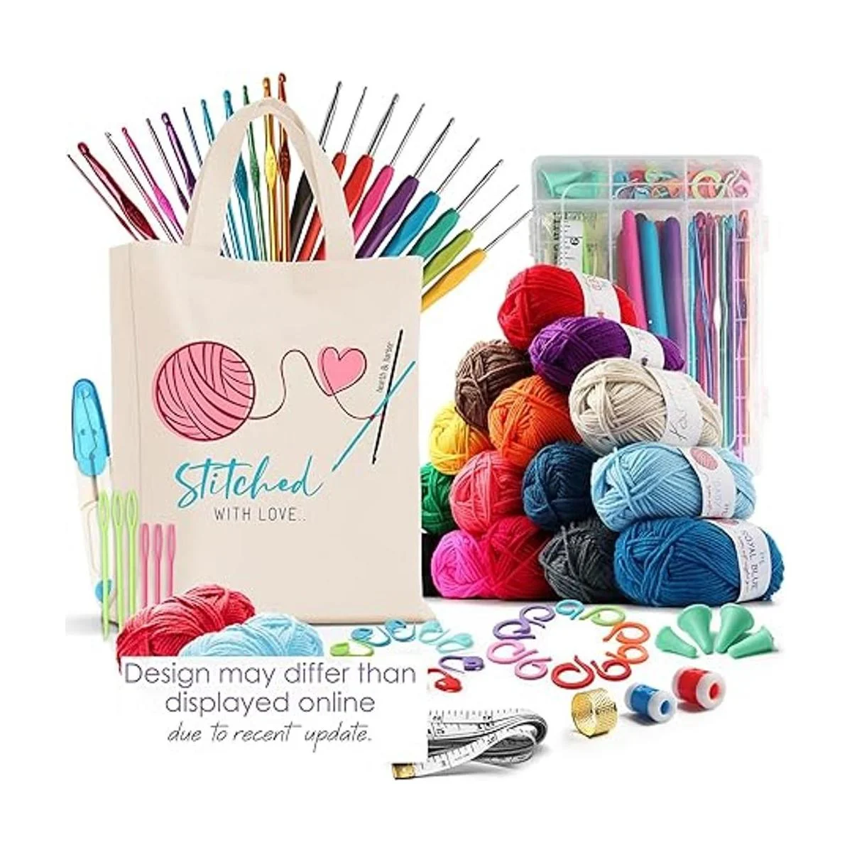 Kit de iniciación de ganchillo: crea hermosos proyectos de ganchillo hechos a mano con este kit de hilo de ganchillo, que incluye 15 carretes de hilo para ganchillo, 21 ganchos de ganchillo y accesorios de ganchillo adicionales.
