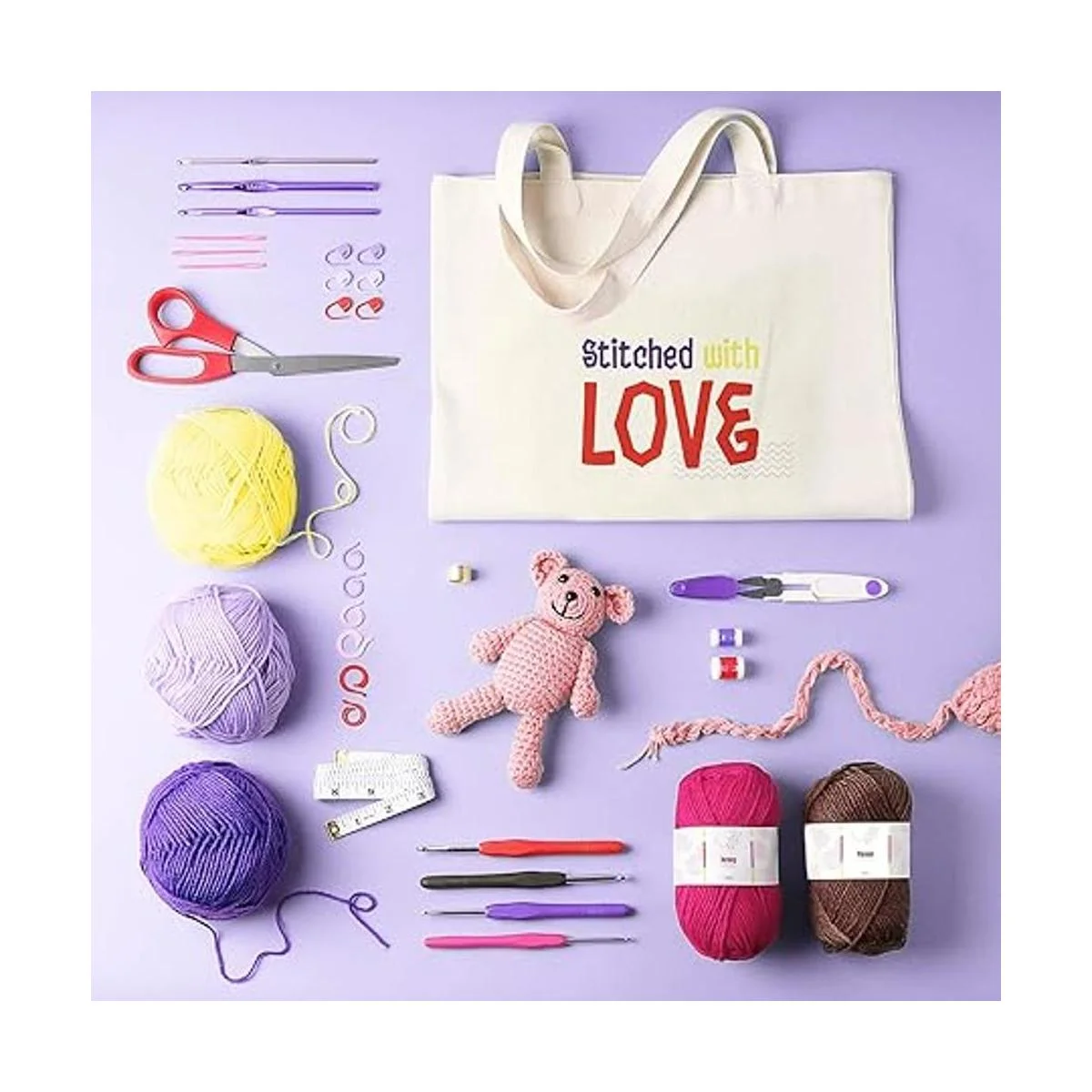 Kit de ganchillo de 73 piezas con ganchillo, juego de hilo de ganchillo, paquete premium que incluye bolas de hilo, agujas, kit de accesorios, bolsa de lona y mucho más, paquete de inicio para niños y adultos, principiantes, profesionales.