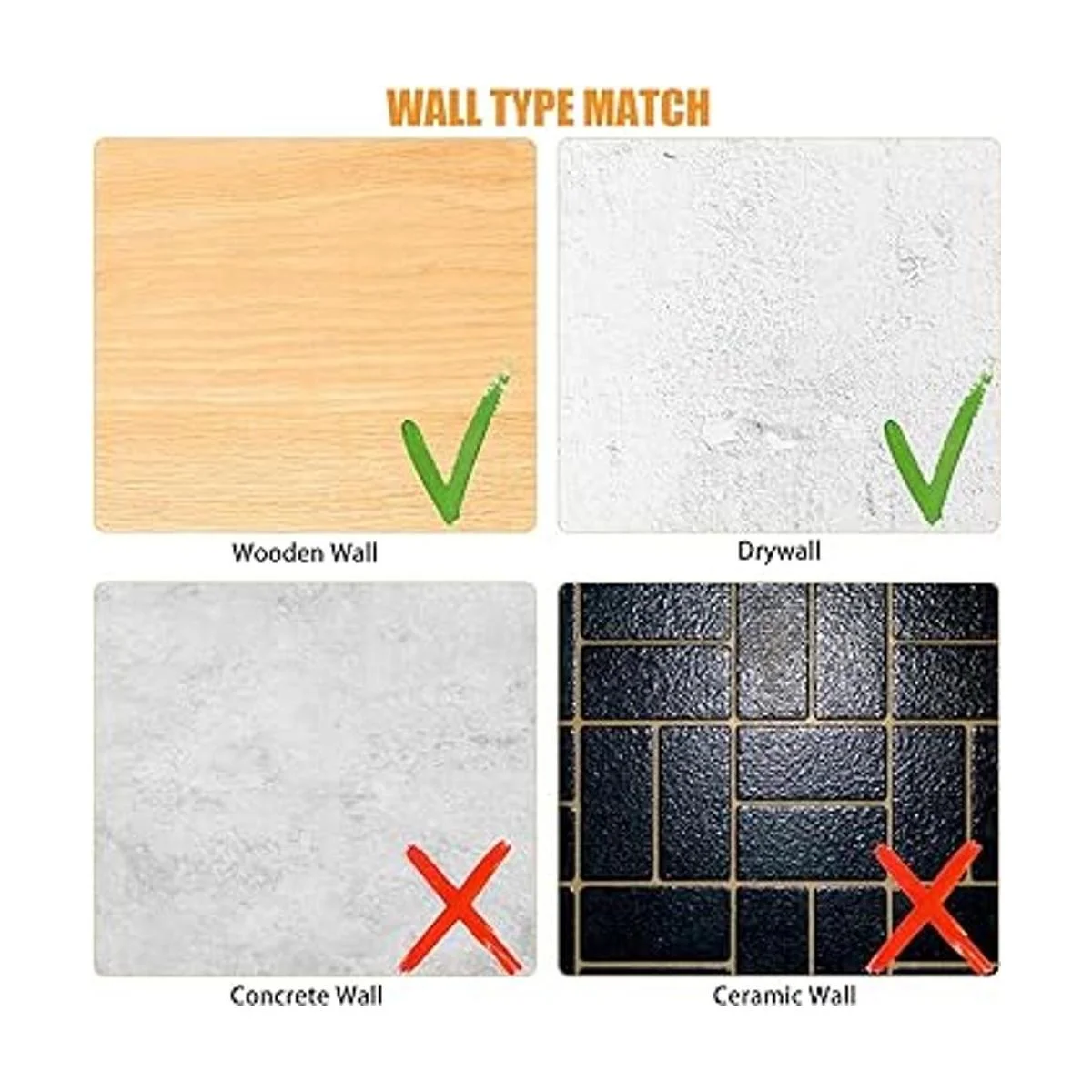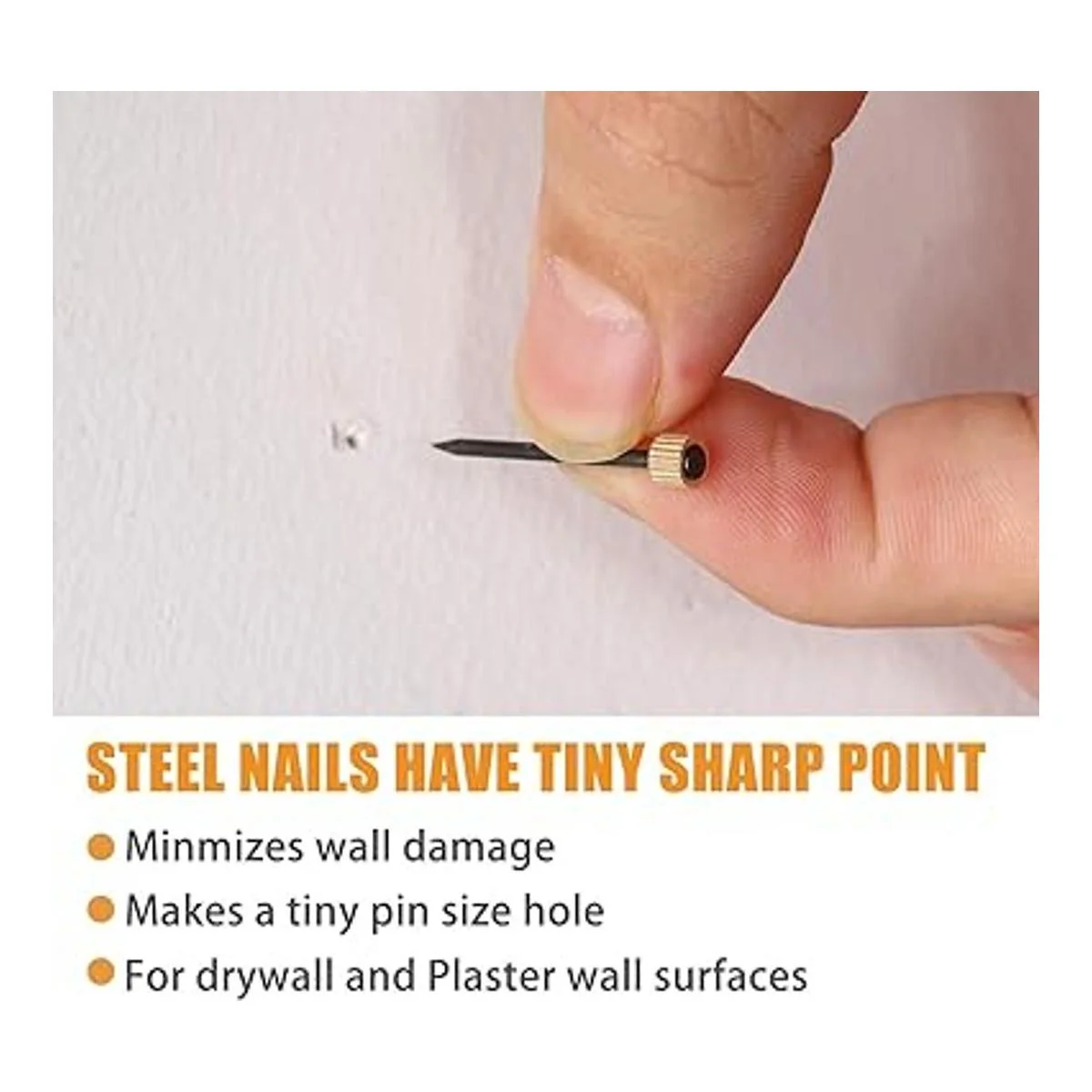 Compatibilidad: con extremos incisivos, los ganchos de fotos son fáciles de clavar en una variedad de paredes, como paneles de yeso, pared de yeso, pared de madera, paneles de yeso, etc. Ten en cuenta que los ganchos de yeso no se pueden aplicar para paredes de hormigón o paredes de cerámica