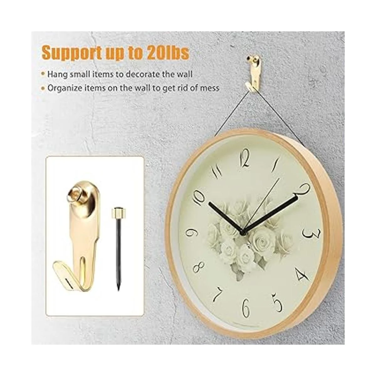 Kit de ganchos de yeso para colgar cuadros con clavos para cuadros de oro, para pared de yeso, montaje en pared de madera de yeso 50, 20 libras