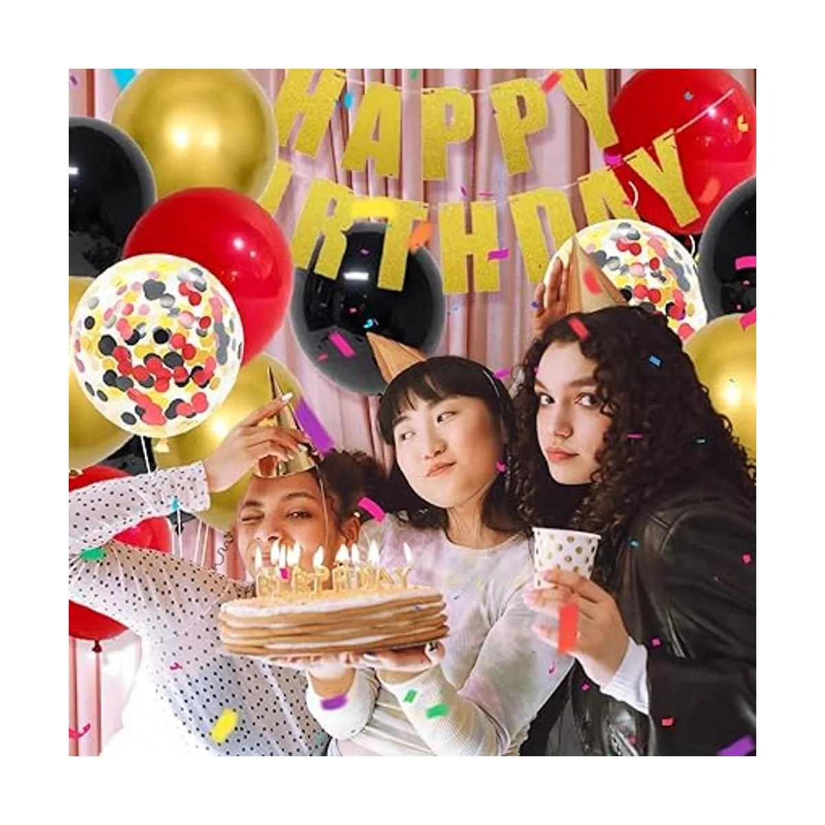 Globos de confeti rojos y negros: con el fin de resaltar el arco metálico de globos dorados y negros, hacemos a medida con globos de confeti de 12 pulgadas. Es un globo transparente con lentejuelas, después de inflar el palo de confeti a la superficie del globo, por lo que es único y hermoso.