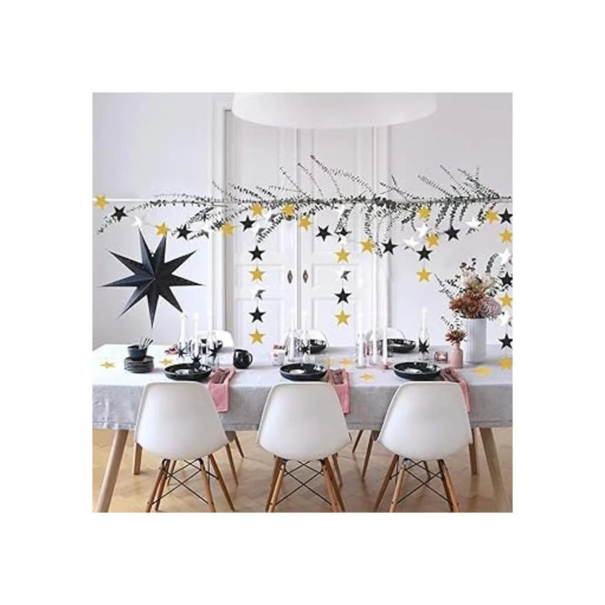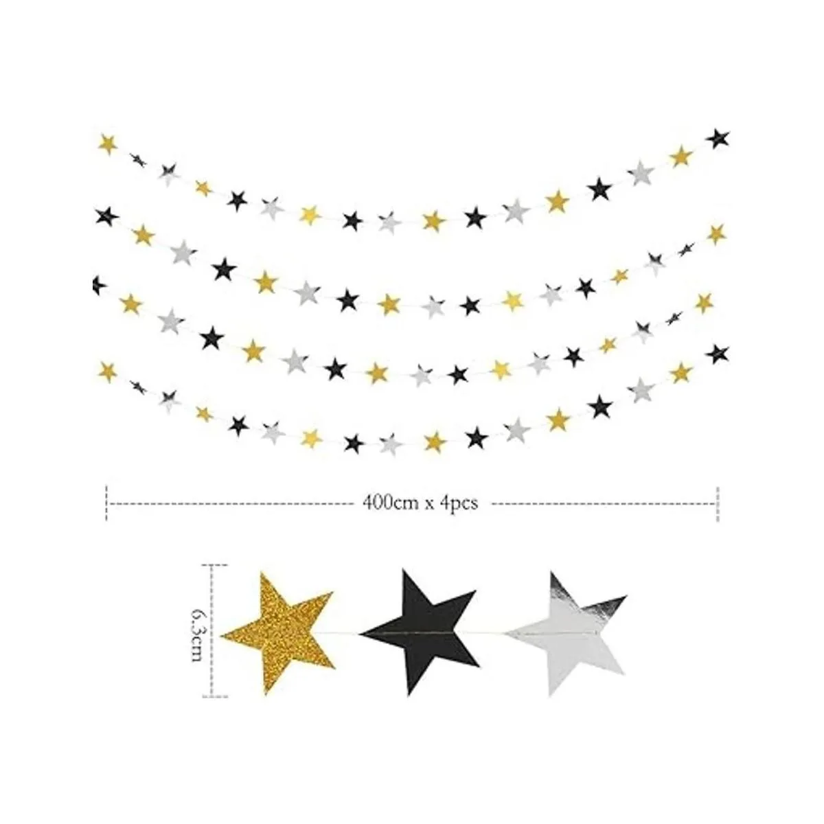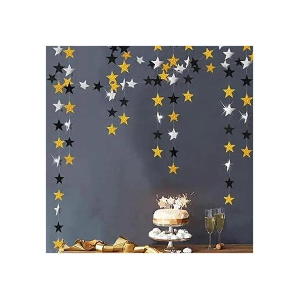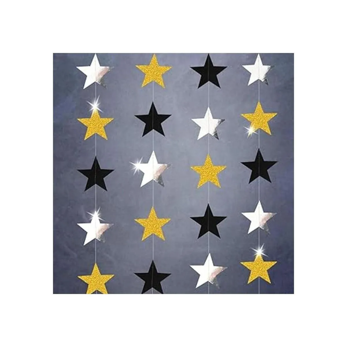 Kit de guirnalda de estrellas doradas y negras con purpurina para decoración de fiestas, cuerda de estrella parpadeante, pancarta, streamers, telón de fondo, para aula, cumpleaños, boda, graduación, Año Nuevo, recital de baile