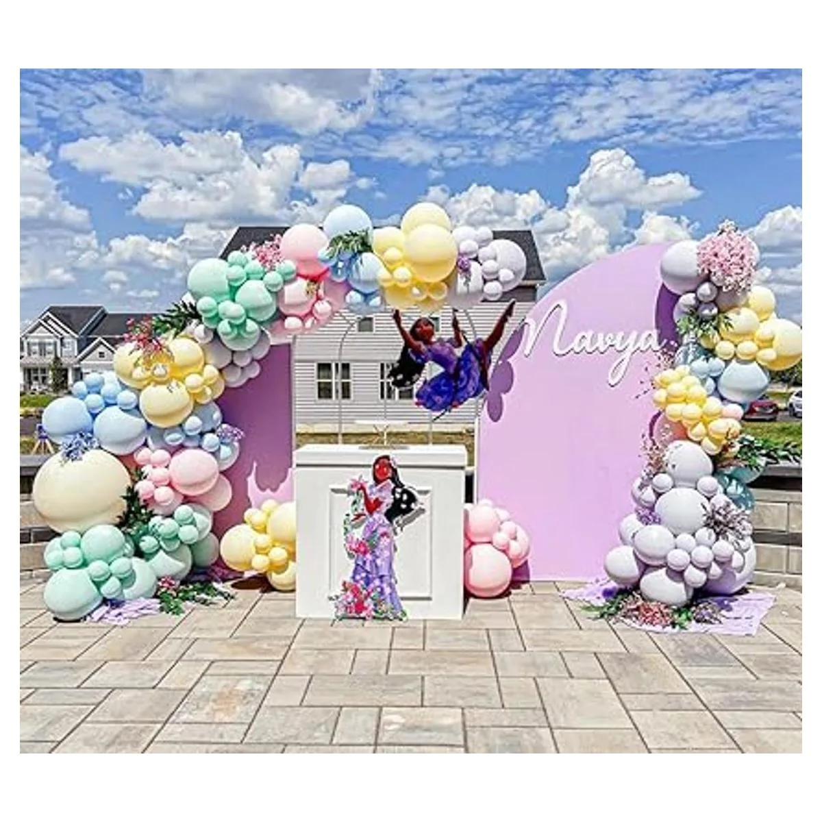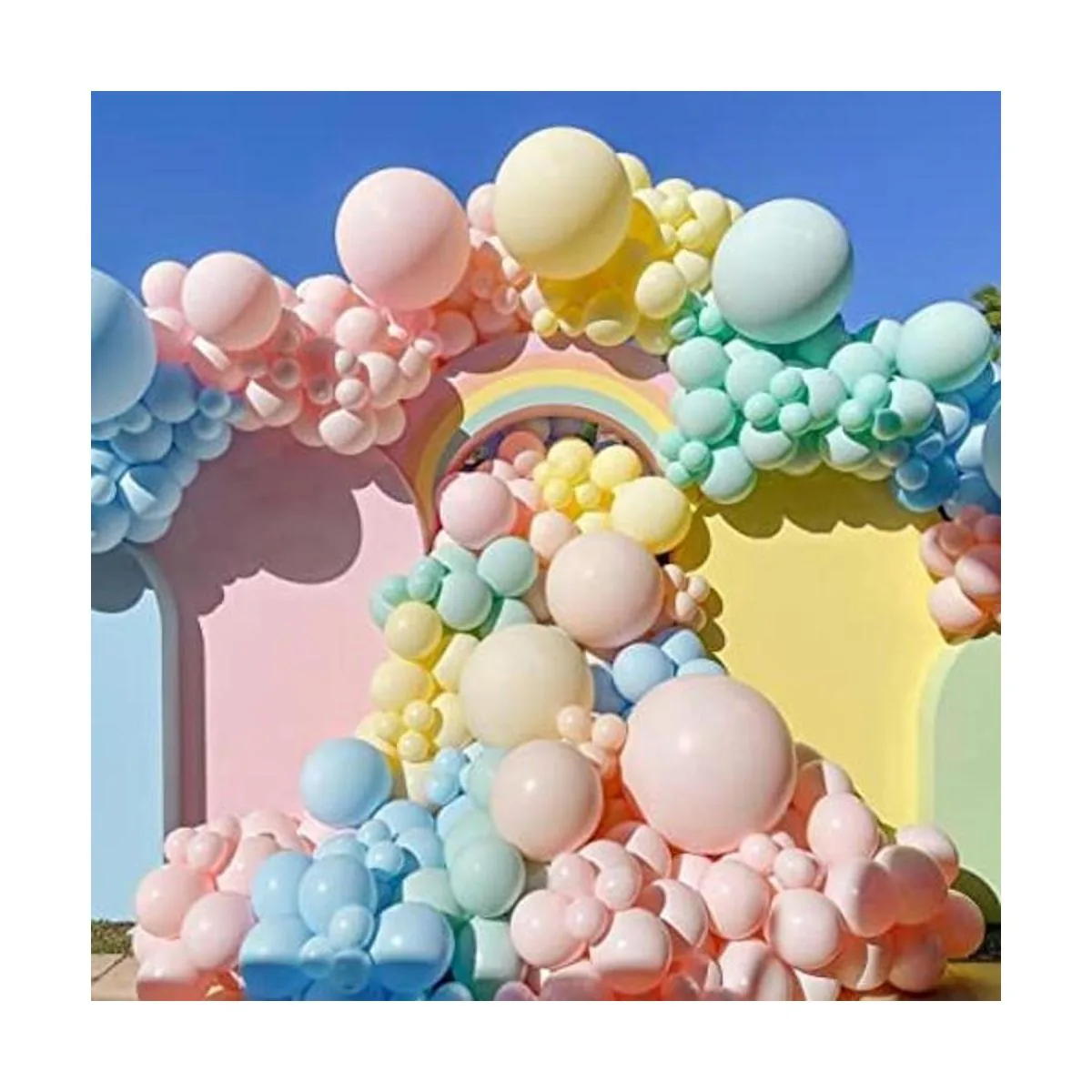 Bonito color y tamaño: el kit de guirnalda de globos rosa y azul es perfecto para decorar tu fiesta colorida. Y los globos de arcoíris pastel de diferentes tamaños y globos azul verde azulado, globos de rosa claro, globos de amarillo pálido y globos de azul bebé pueden hacer fácilmente un hermoso arco de globos rosa dulce y amarillo como quieras.