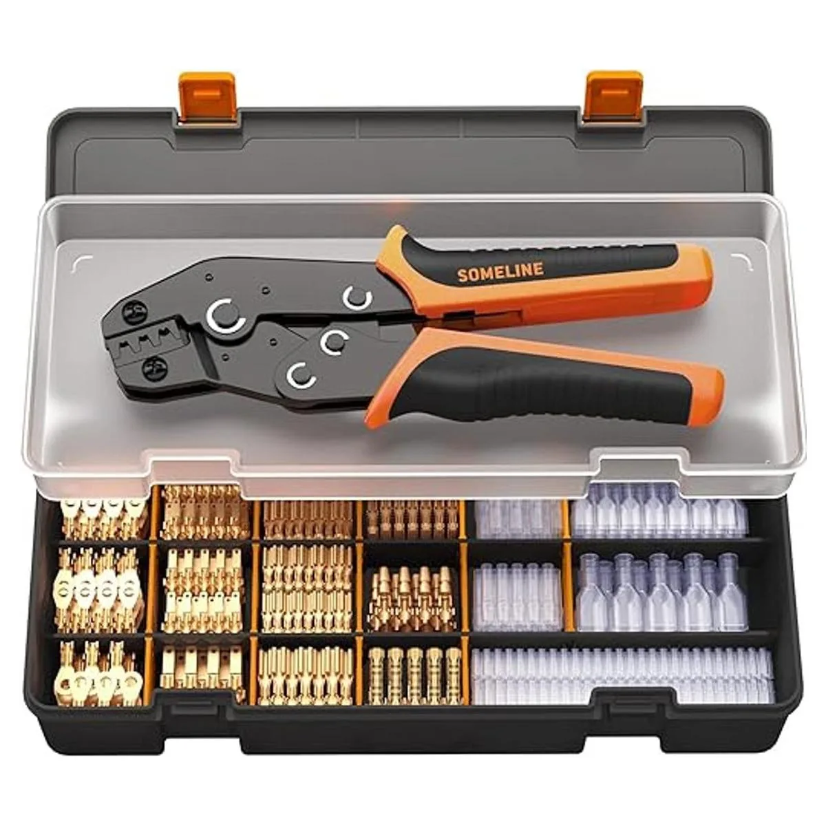 Kit de herramientas de crimpado con conector de terminal abierto, 0.110 in, 0.138 in, 0.154 in, 0.189 in, 0.248 in, 2414 AWG Crimpadora SOMELINE para uso en Molex 0.084 in, 0.093 in, conectores AMP TE, terminal macho hembra y anillo