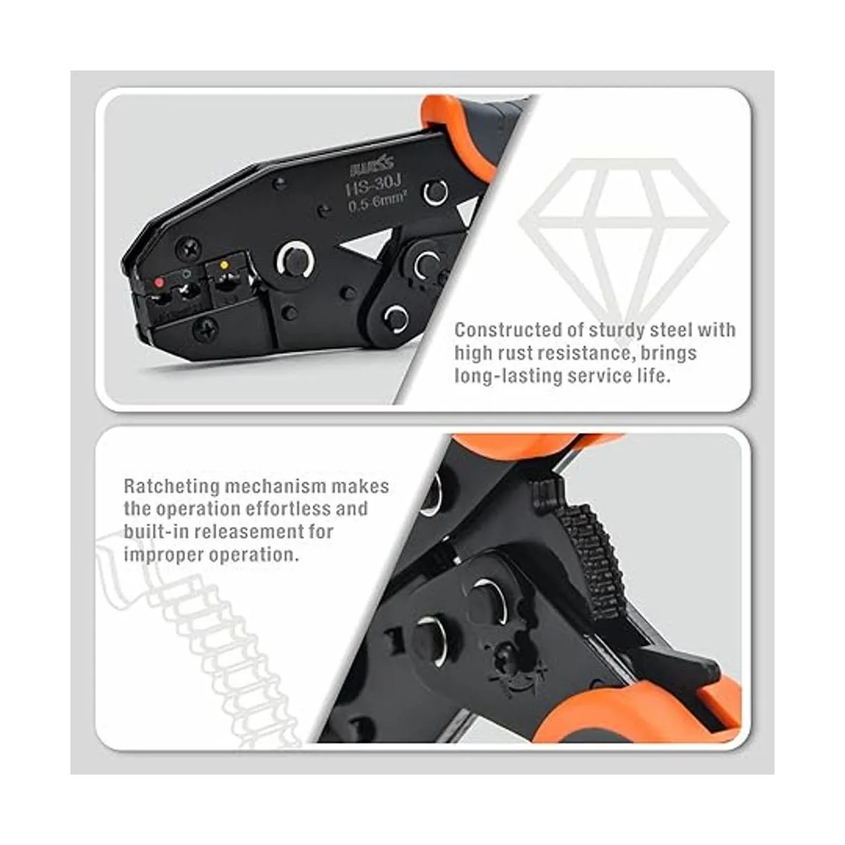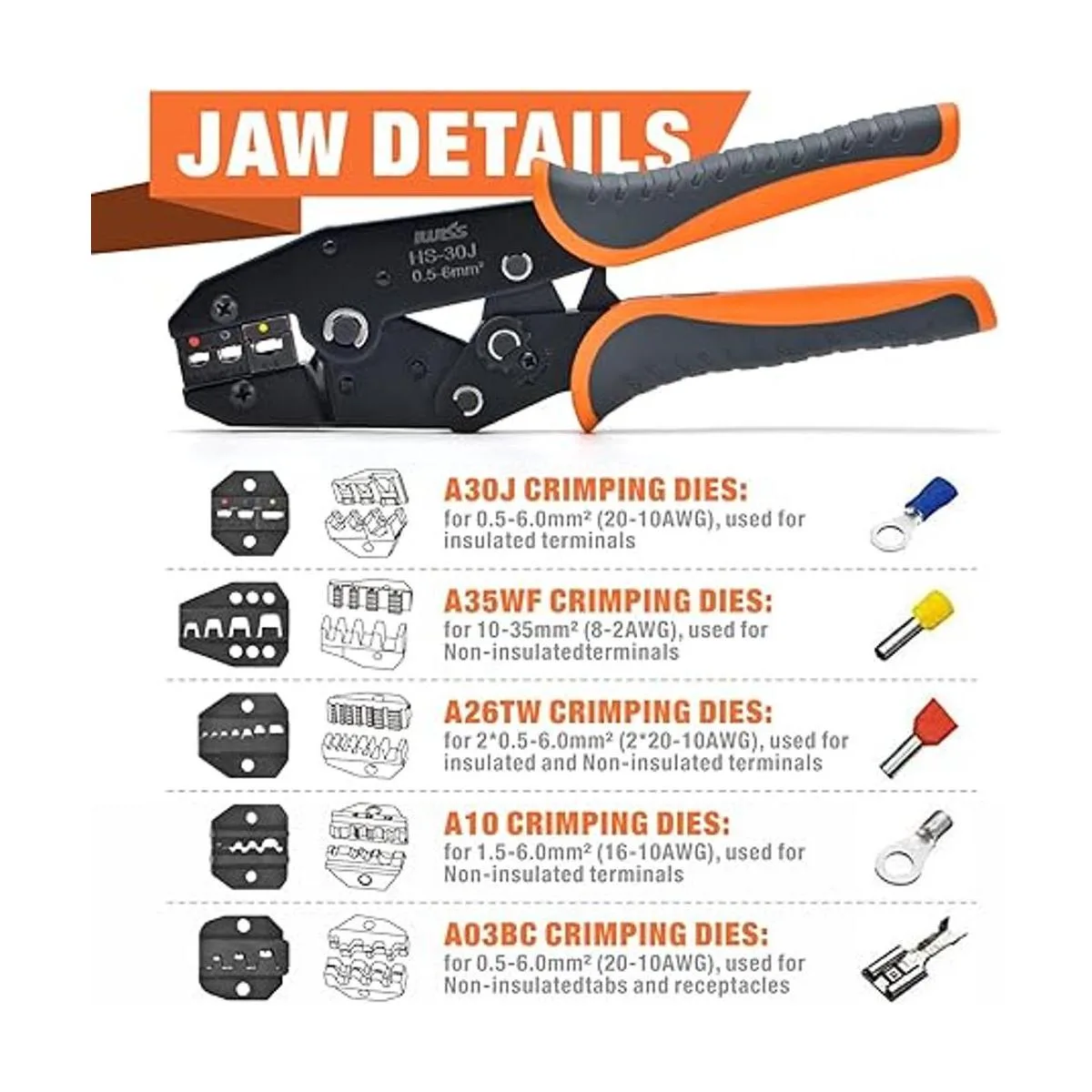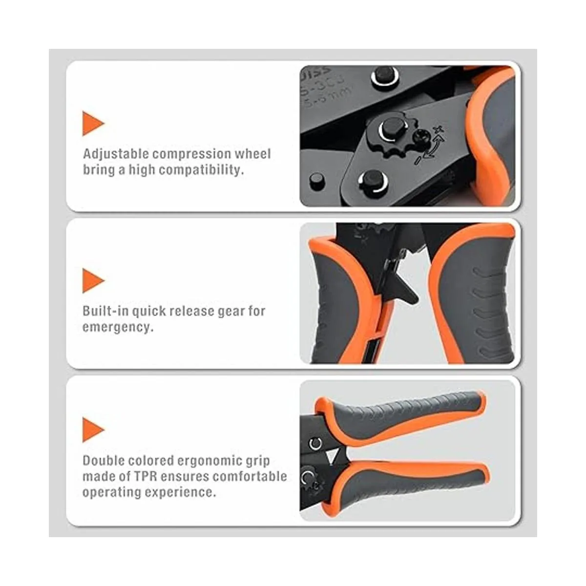 Crimpado de acero especial con 5 troqueles intercambiables, un destornillador 6 x 0.39 pulg, con bolso de Oxford.