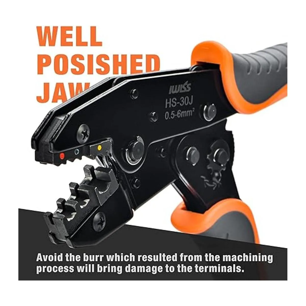 Kit de herramientas de crimpado IWISSS con limpiador y pelador para diferentes terminales con 5 juegos de troqueles intercambiables en bolsa Oxford.