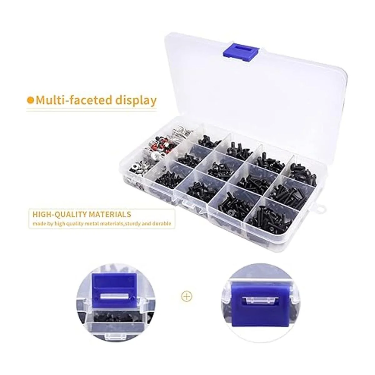 Fácil organización y portátil: clasificar y almacenar en diferentes rejillas en una caja de plástico para un uso fácil