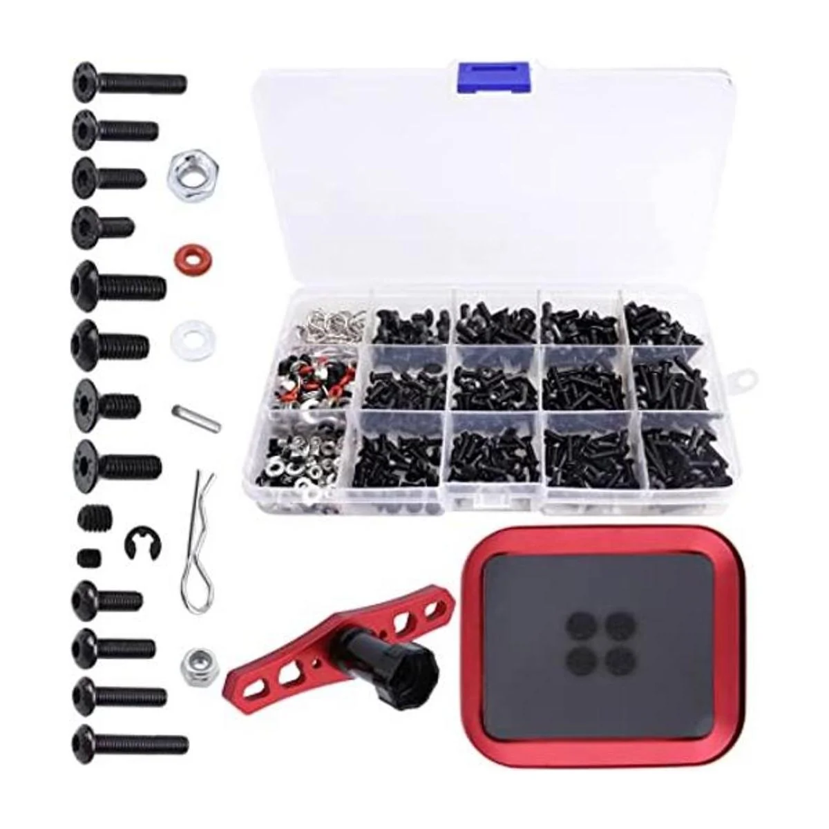 Kit de herramientas de reparación de RC para tornillos M3 M4, tornillos hexagonales, tuerca, cierre de hardware con bandeja de tornillos y herramientas de llave hexagonal de 0.669 in para 18 110 112 escala RC Coches Camiones Crawler Buggy DIY piezas