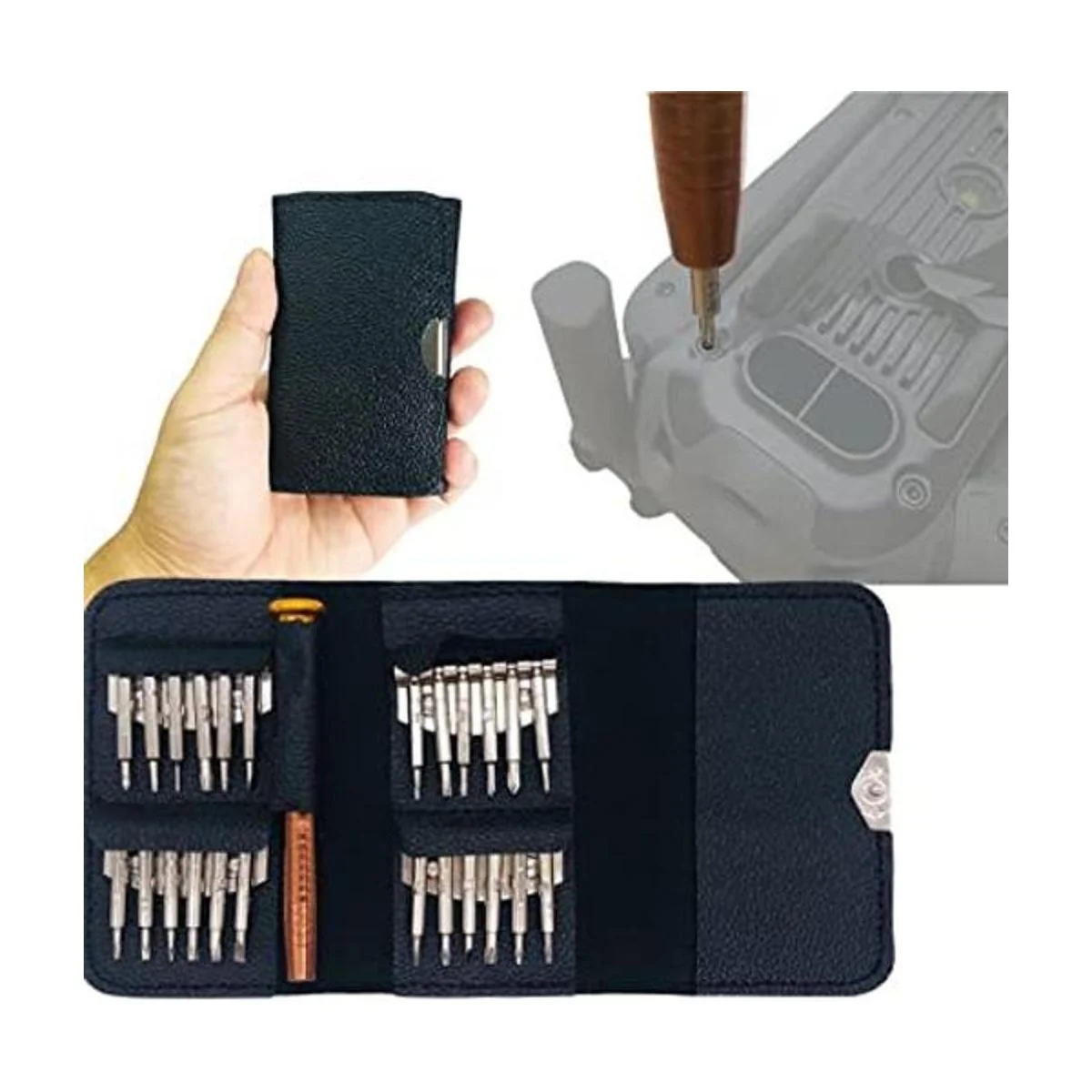 Juego de herramientas 25 en 1: hay 25 piezas, incluye 1 mango de destornillador y 24 puntas con diferentes tamaños y formas.